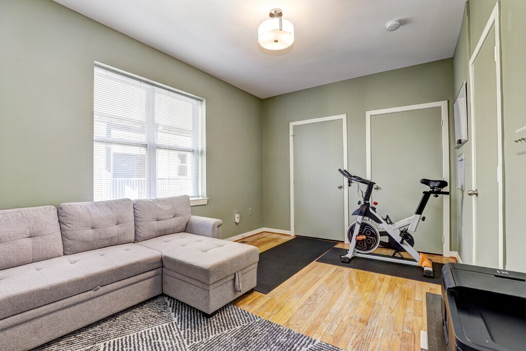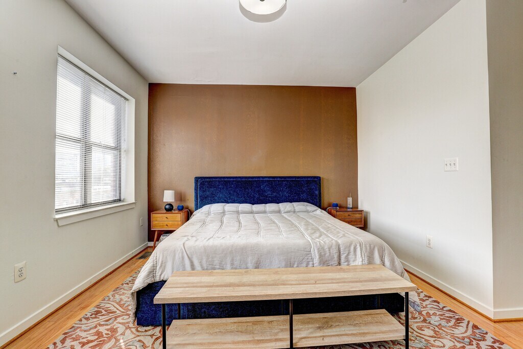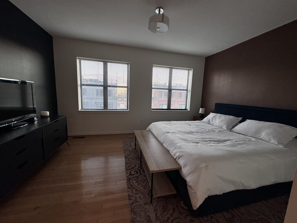**Modern Charm Meets Urban Convenience at 1726 Aliceanna St, Unit 303** Welcome to your future home in the heart of Baltimore's lively Fells Point neighborhood! Unit 303 at 1726 Aliceanna St is a stunning, two-level penthouse condo in historic Fells Point that blends modern design with urban appeal, offering everything you need for a comfortable and stylish city lifestyle. This unique, two-level penthouse condo in historic Fells Point features sun-filled spaces, sleek hardwood floors, high ceilings, and large windows that flood the home with natural light. The open-concept living and dining area is perfect for both relaxing and entertaining, while the gourmet kitchen boasts stainless steel appliances, granite countertops, and ample storage space. The primary bedroom suite offers a serene retreat with plush finishes, a walk-in closet, and en suite bath. This private bath features a double vanity, and bath/shower combination. Need a home office? The flexible layout gives you plenty of room to work from home. The second bedroom is currently a spacious office with open space for fitness. Featuring a comfortable couch, that changes to a bed in one pull, custom shelving, exercise bike and workout mats. Our favorite feature? The private rooftop deck on the third floor, offering sweeping views of the water and city—an ideal spot for relaxing or hosting guests. Unwind in the thoughtfully landscaped community courtyard, featuring an atrium-inspired design, water feature, and shared grill. Parking is effortless with a covered, assigned spot in this secure entry garage. The building is also secured with code and fob access, providing peace of mind and an extra layer of security. Located centrally between Fells Point, Harbor East, and Canton, this condo includes gated parking and is minutes from Johns Hopkins, with easy access to I-95 and I-895. Don't miss this unique opportunity for luxurious Fells Point living! Become a regular at the city's best restaurants, cafes, shopping, and the waterfront promenade. Whether you're looking to enjoy the energetic city life or retreat to your private, peaceful rooftop haven, Unit 303 offers the best of both worlds. Offered fully furnished with all utilities included for $4,500 per month, we're seeking a long-term tenant with a minimum lease of 6 months, making this an ideal choice for someone looking for a hassle-free move-in and extended stay.