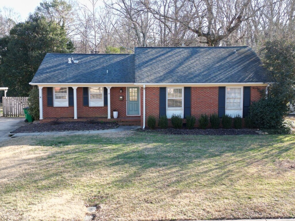 This brick ranch home in the highly desired Starmount neighborhood has a completely fenced-in backyard and updated features throughout. The 3 bedroom 1.5 bath house sits on a half acre lot and has 1,471 finished sq. ft. The half acre lot also includes a storage shed and back patio with multi-level planters and a high top table with stools for your outdoor enjoyment. Full bathroom has been renovated with a double quartz sink and custom tile flooring. Spacious living room with a bay window overlooks the large backyard, and is separated by a half wall from the home's entry. The half bath is in the master bedroom, which also has a walk-in closet. The kitchen features an open layout that includes a formal dining area, with enough space for a breakfast nook if desired and even a cozy corner office. The kitchen and dining area is anchored by a built-in wood burning fireplace (for aesthetic purposes only). Washer and dryer is provided. Tenant pays utilities and maintains the lawn. (Lawn care service provider available if needed.) An application is required to view the property.