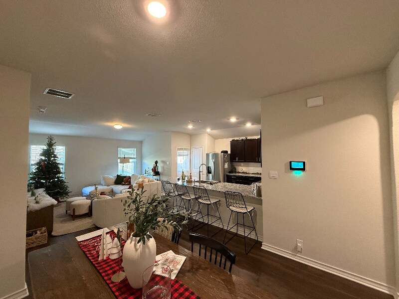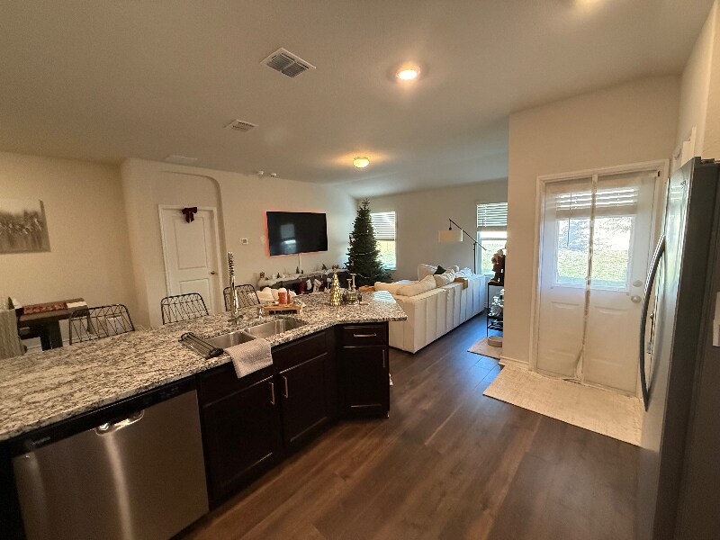 Property Id: 2268832 Charming 3-Bedroom Single-Story Home with Year-Round Outdoor Living Available 19 Jan 2026! Step into this beautifully designed single-story 3-bedroom, 2-bathroom home offering 1,442 sq ft of bright, modern living space and an attached two-car garage. As soon as you enter, you're welcomed by a spacious dining area that flows seamlessly into the open-concept kitchen perfect for entertaining. The kitchen boasts: Expansive granite countertops Stainless steel appliances Electric cooking range Trendy subway tile backsplash Tons of cabinet storage The kitchen overlooks a sunny living room filled with natural light, creating a warm and inviting heart of the home. Retreat to the private primary suite featuring: Luxurious ensuite with double vanity, separate soaking tub, walk-in shower, and private water closet Huge walk-in closet Two additional bedrooms, a second full bathroom, and a convenient utility room are thoughtfully located off the entry hallway. Modern Features You'll Love: Soaring 9-foot ceilings throughout 2-inch faux wood blinds on every window Durable luxury vinyl plank flooring in entry, kitchen, dining, and living areas Ceramic tile in bathrooms and utility room Pre-plumbed water softener loop Home is Connected smart home system control lights, front door lock, and thermostat from your phone! Outdoor Oasis for All Seasons: Relax or entertain on the covered patio Fully landscaped yard with automatic full-yard irrigation Versatile gravel fire pit area in the backyard perfect for cozy winter nights around the fire with friends and family. Garage: Outfitted with 3 metal storage racks for your convenience. Perfect space for home gym or vehicle parking. Location: 15 minutes from Lackland Air Force Base. 30 minutes from the historic San Antonio River Walk! 5-10 minutes from shopping center, grocery and countless restaurants! 15 minutes from San Antonio Sea World. Nearby golf courses. Don't miss out schedule your tour today!