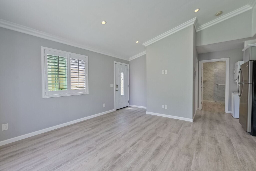 This beautifully constructed 1-bedroom, 1-bath attached ADU (approx. 675 sq. ft.) offers a quiet, private living experience in the desirable Jeffries Ranch area. Thoughtfully designed as an attached apartment to a single-family home, the unit features excellent sound insulation, ensuring noise is not an issue between walls. A newly added fence creates a private yard and patio, providing separation from the main residence and a true sense of privacy. This home is ideal for a quiet, well-qualified tenant seeking a comfortable and low-maintenance living environment. Due to the layout and living configuration, occupancy is limited. The owners are hands-on, professional, and respectful, and are seeking a tenant who will be a great fit for this unique living situation. Property Features: • Private entrance, patio, and fenced yard • Assigned driveway parking plus street parking • Gorgeous kitchen with Reverse Osmosis (RO) system • Refrigerator, Stackable washer and dryer • Luxury-style bathroom • Air conditioning Utilities: • Water, trash, and sewer included • Tenant responsible for electricity and internet