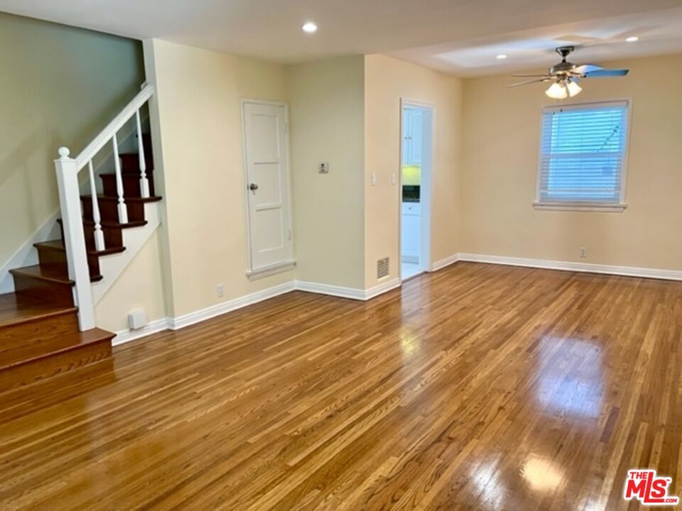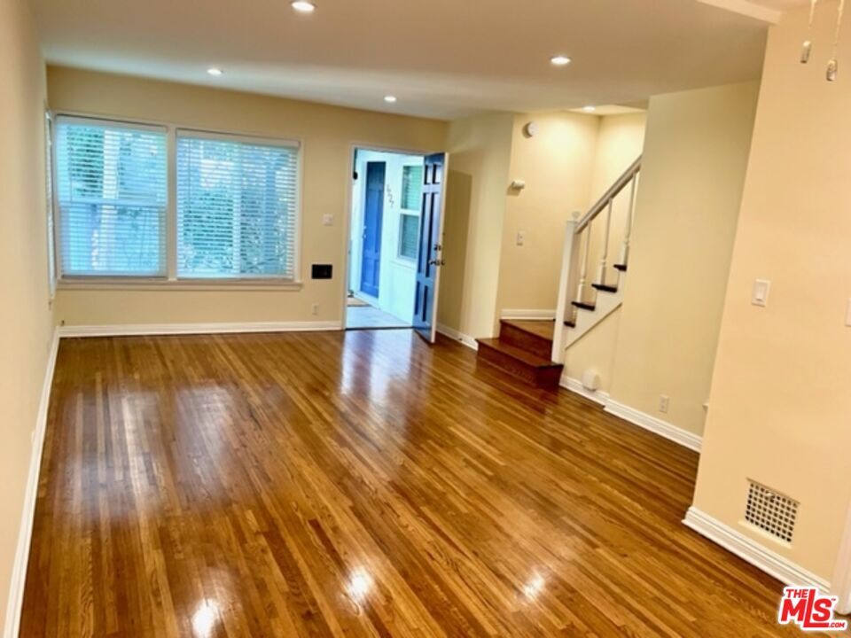 Wonderful Townhouse in a charming garden setting. Located in prime Westwood, just blocks to UCLA. This 2-level townhouse features a one-of-a-kind Private Backyard just for this unit! Enjoy relaxing and entertaining in your own private yard that is fully fenced. Small 4-unit complex. Unit has hardwood floors, double-pane windows, A/C and its own Washer and Dryer. First level has an open living room and dining area. Updated kitchen with granite counters and stainless steel appliances. Kitchen opens out to the private backyard. Stairs up to a large primary bedroom with tree-top views. Second bedroom is perfect for a home office with its own A/C heating unit. Full bathroom with tub and shower. Includes a 1-Car Private garage w/ remote and the space behind it. One small pet considered. Avail approximately May 1st for 1 year or longer. Close to UCLA, Bristol Farms, 99 Ranch market, shops, banks & cafes on Westwood Blvd as well as the 405. By Appt Only with notice. MLS# 26668105