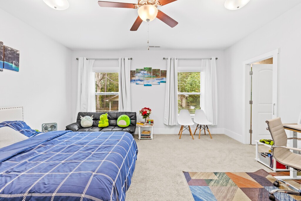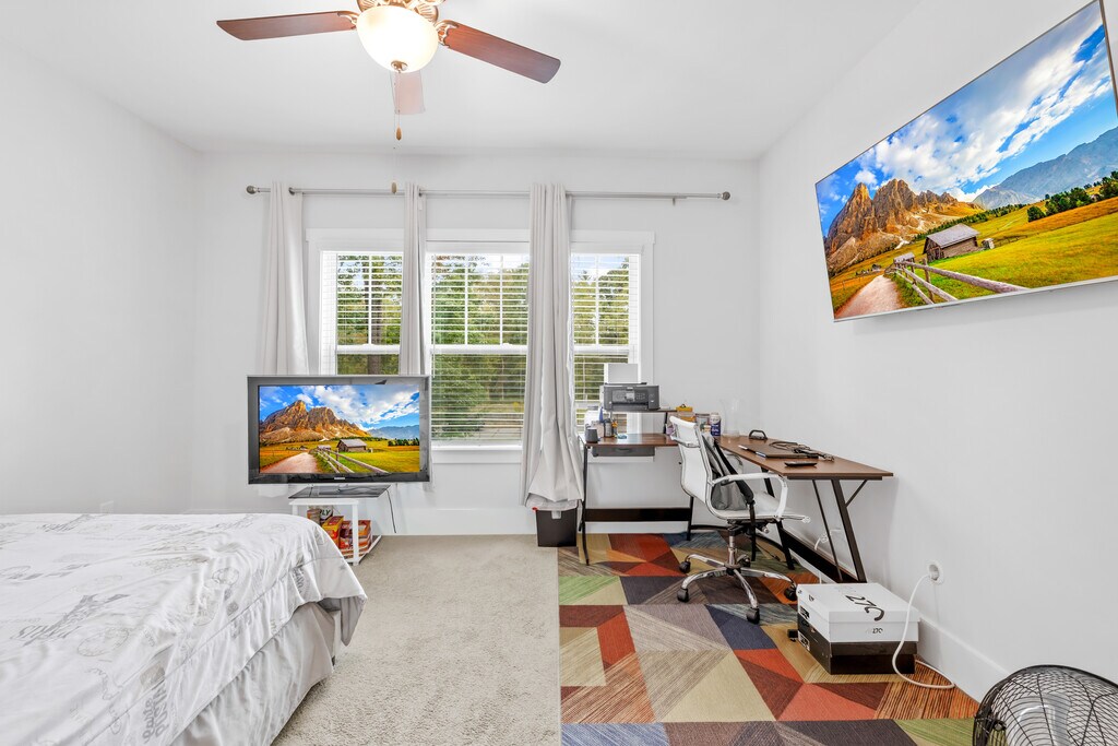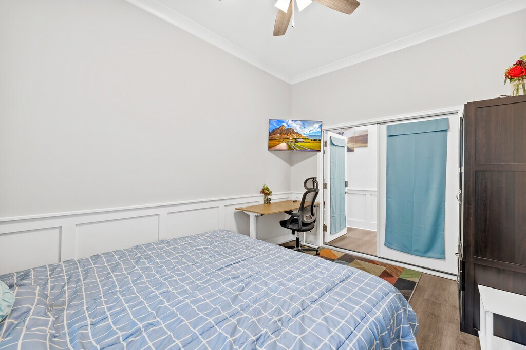 Room for rent: Welcome to our lovely brand new, Creek view, peaceful, centrally-located, Smart home with lots of room to spread out & relax. Our home has a gorgeous backyard with lush landscaping and a fire pit, perfect for starlit relaxation. Classy yet comfortable furnishings allow you to enjoy your vacation in style & there are dedicated workspaces throughout the house so you can get some work done too! You can bring your own paddle board for some lake fun or rent one nearby. LIVING SPACE • Plenty of seating with a centre table • Smart TV so you can log in to your streaming services • Plenty of natural lighting KITCHEN AND DINING SPACE • Full-sized refrigerator • Oven, dishwasher, stove, microwave, and toaster • Coffee maker and supplies • Dining room table • Kitchen island and stools MASTER BEDROOM • Comfy King-sized bed • Smart TV • Side tables and lamps • Ceiling Fan • Smart Standing Desk - 55 inch (big size) • En suite Bathroom • Smart door lock • Walk-in closet ADDITIONAL AMENITIES • Wi-Fi access • In-house washer and dryer • Spacious backyard • Backyard Fire Bowl • Lake access (You can bring your own paddleboard, kayak, etc.) • Backyard Swing *Bedroom furnishing not removable Note: Do not visit this property without first contacting us to schedule a tour at the number below.