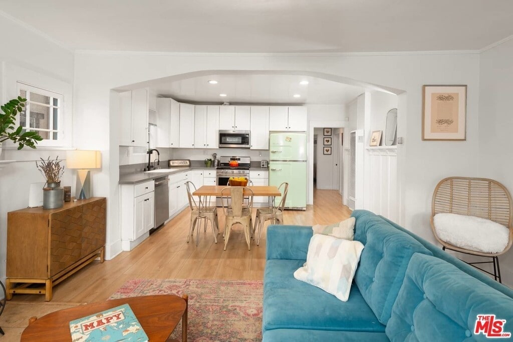 Captivating Contemporary Craftsman in Leimert Park! This sun-filled 4 bedroom, 2 bath Craftsman blends timeless charm with modern upgrades in one of LA's most sought-after neighborhoods. Just moments from USC and the Expo Line, this inviting home features an open-concept floor plan perfect for everyday living and entertaining. The bright living room with a decorative fireplace flows seamlessly into the remodeled kitchen, complete with shaker cabinetry, quartz countertops, stainless steel appliances, and a retro-inspired refrigerator that adds a touch of character. Natural light fills the space through large front windows, highlighting the warm wood flooring throughout. The spacious bedrooms offer comfort and flexibility, while the updated bathrooms include sleek finishes and a walk-in shower. A dedicated laundry area with modern washer/dryer adds everyday convenience. Outdoors, enjoy two private yard spaces: one with a patio lounge, string lights, and a hammock ideal for entertaining or relaxing, and another with a grassy play area, planter beds, and room to garden. Recent upgrades include new appliances, flooring, plumbing, irrigation, and landscaping. Located near local parks, shops, South LA Cafe, Alta, and everything from DTLA to Santa Monica, this home offers the perfect balance of style, comfort, and convenience.