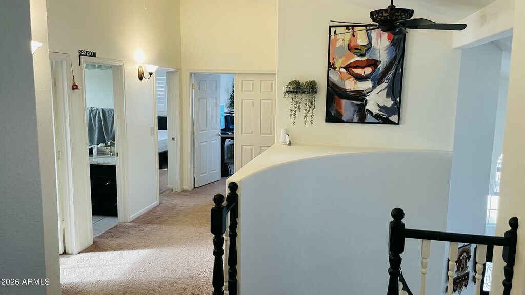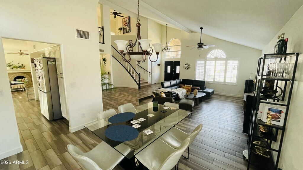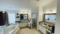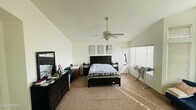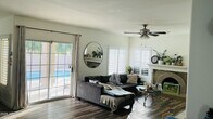 Beautiful Home in Canyon Springs featuring 5 bedrooms and 3 full bathrooms and a private pool. This corner-lot property features high ceilings,wood-look tile flooring,plantation shutters,and multiple living and dining areas. The family room includes a fireplace and wet bar. The kitchen offers granite countertops,stainless steel appliances,mosaic tile backsplash,ample cabinetry,and a breakfast nook with bay window. The upstairs primary suite includes a private balcony,walk-through closet,and en-suite bathroom with dual vanities,separate tub,and shower. Additional features include a 3-car garage,covered patio,central vacuum,water softener,and dual AC units installed in 2019. Storage Areas (Garage cabinet,outdoor shed) are not available for tenant use.