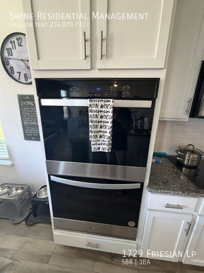 Discover Village at Nolan Heights in Harker Heights — a spacious 2-story home offering five bedrooms and 2.5 bathrooms. The open kitchen features granite counters, an island sink with a pull-down faucet, pantry, stainless appliances including side-by-side refrigerator with water/ice and double ovens, and subway tile backsplash. Two living areas and recessed lighting create versatile living space, while ceiling fans and central air/heat ensure comfort. The master suite includes a dual vanity and separate walk-in shower, with built-in shelving in the walk-in closet; the guest bath offers a dual vanity as well. Additional highlights include wood privacy fence, covered front and back porches, exterior stone planter boxes, white faux wood blinds, luxury vinyl/tile/carpet flooring, two linen closets, walk-in closets, garbage disposal, sprinkler system, security system, and a three-car garage with openers. 2 Linen Closets 2 Living Areas 2 Story 3 Car Garage Parking With Opener Built In Shelving In Master Closet Central Air And Heat Covered Front And Back Porches Dual Vanity In Guest Bathroom Dual Vanity In Master Suite Exterior Stone Planter Boxes Granite Counters Kitchen Sink Located In Island Luxury Vinyl/Tile/Carpet Through Out Pantry In Kitchen Petal Sink In Quarter Bathroom Pull Down Kitchen Sink Faucet Recessed Lighting Security Sytem Seperate Walk In Shower In Master Bathroom Stainless Appliances Stainless Double Ovens Stainless Side By Side Refrigerator With Water And Ice In Door Subway Tile Back Splash In Kitchen Walk In Closets White Faux Wood Window Blinds Wood Privacy Fence