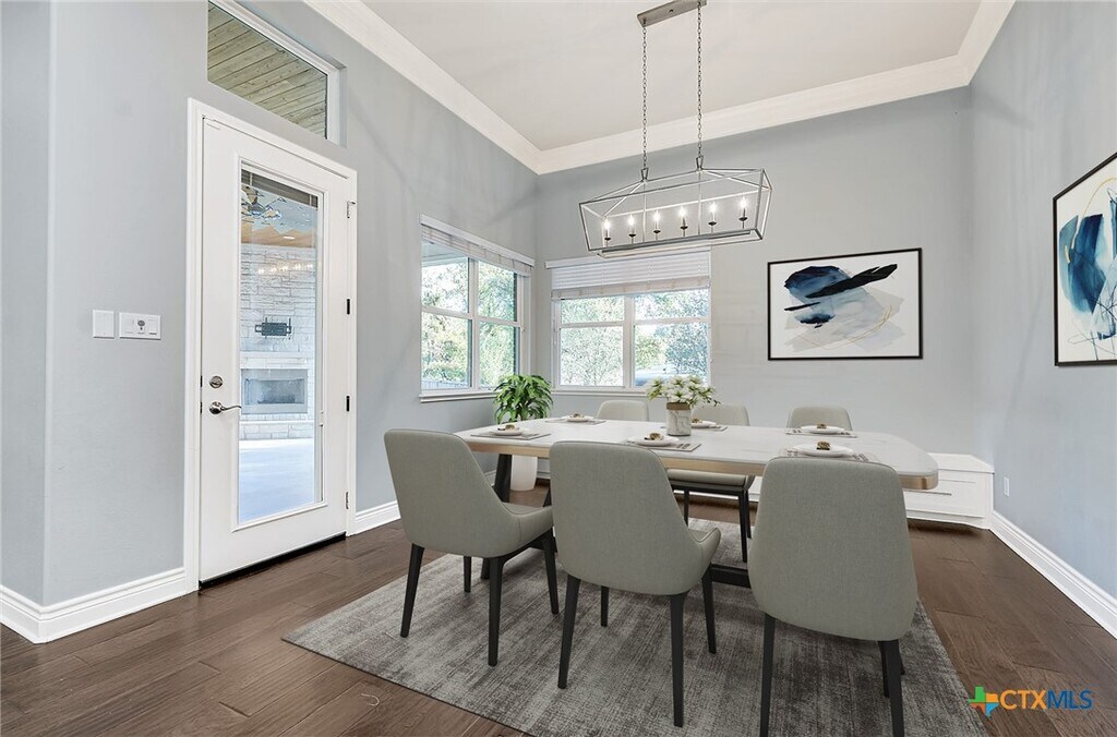 Move-in-ready! Experience custom luxury in this 5-bedroom,3.5-bath 3,794 sq ft Stellar Homes masterpiece located in the prestigious Las Colinas Community in Academy ISD. Inside,enjoy huge open floor plan with soaring 12-ft ceilings,hand-scraped hardwood floors,and a chef’s kitchen equipped with a massive granite island,double ovens,wine fridge,and gas cooktop. The upstairs serves as a dedicated entertainment hub with a professional media room,wet bar,and surround sound. Sustainability meets convenience with a Tesla charger in the 3-car garage and a fully boarded attic for storage. Outdoor living is unmatched,featuring a covered patio with a built-in grill,outdoor fireplace,and a private backyard for ultimate privacy. Just minutes from Baylor Scott & White,VA hospital and I-35.