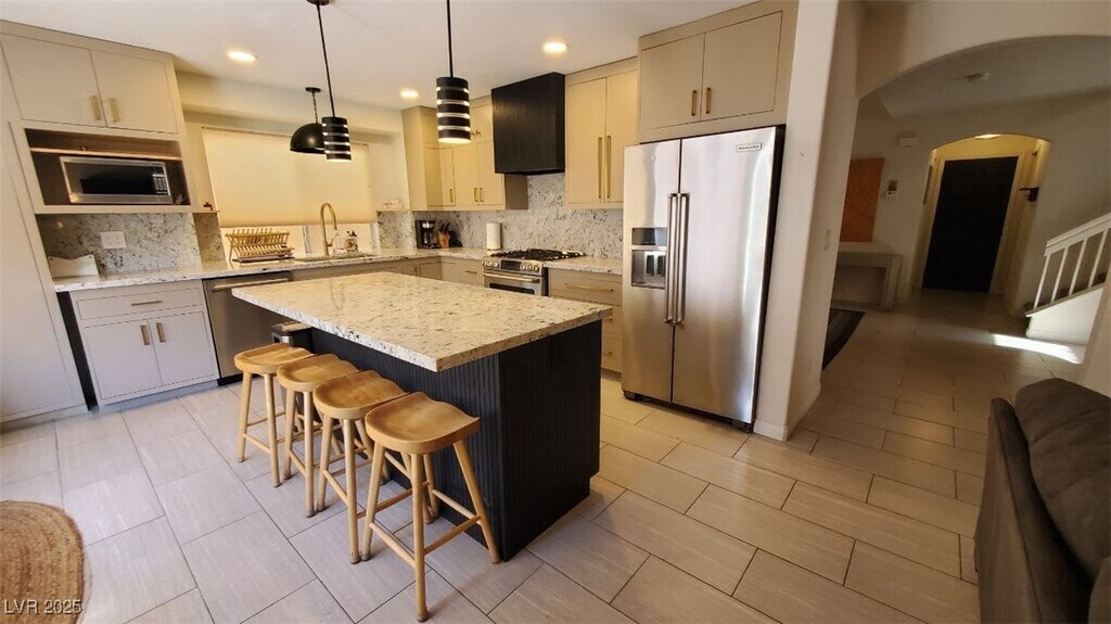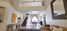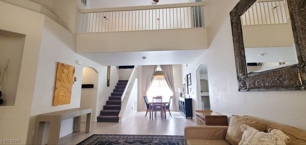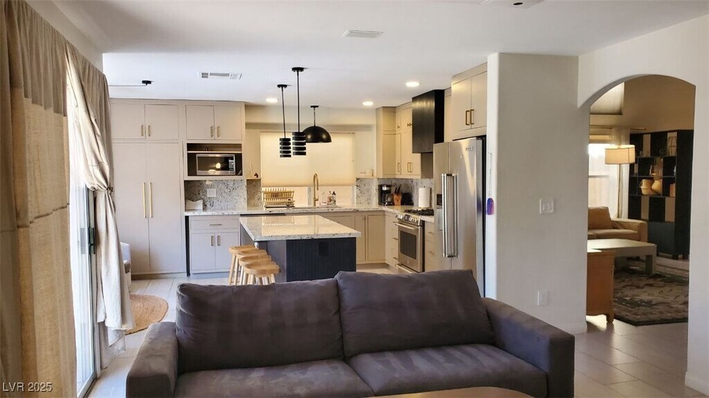 Charming and cozy 3 bedroom/ 2 bathroom, furnished and ready for the turnkey at home" feeling. Spaciousness defines it inside and out. Vaulted ceilings connect the formal dining room/ living room combo and large windows throughout allow the house to breathe and shine light on the flowing-thoughtful design. Before leaving the 1st floor the family room plays nicely with the chef's kitchen abreast of the big backyard with patio & connected BBQ grill. Delight in marble counters/backsplash, tile floors, and elegant lighting. Your culinary haven is complete with modern appliances, updated cabinets and a full sized garden window. Upstairs, you’ll find carpet throughout and catwalk to the primary suite featuring a walk-in closet and a updated bathroom with a separate tub and shower. Quiet community near desert shores, parks, hiking, Summerlin pkwy/95, and great dining options. A stylish and comfortable rental in a prime location and don't forget about the 3 car garage! Available furnished."