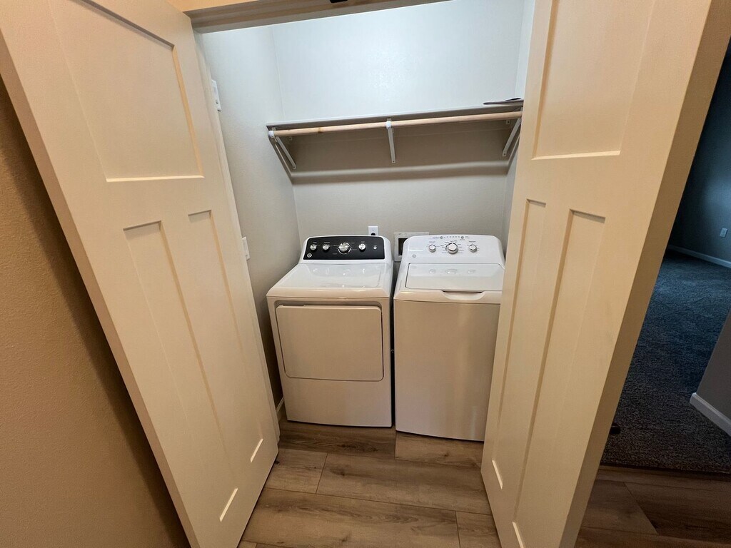Don't miss this newly built townhome with vinyl plank flooring, granite countertops, stainless steel appliances, washer and dryer included and a balcony off the primary bedroom upstairs. Both bedrooms upstairs have their own full bathrooms. This home is in a beautiful neighborhood an features a 1 car garage as well as a driveway and an outdoor storage room. This one will go quickly so don't miss out! Please click the link here to apply: [1729Kids]