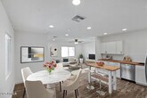 Located in the coveted St. Gregory community,this meticulously renovated 4bed/3bath home delivers style,efficiency,and quality at every turn. Spanning more than 1,700 square feet,the home showcases wide plank LVP flooring,updated lighting,and a reimagined kitchen with butcher block surfaces,stainless appliances,shaker cabinetry,and a statement farmhouse sink. The bathrooms have been redesigned with upscale finishes,highlighted by a spa inspired primary suite featuring custom tile work and dual showerheads. Significant system upgrades include two new HVAC units,solar,tankless water heater,and a new roof. The exterior offers low maintenance turf,paver walkways,an expanded patio,and a fully paved drive. Turnkey and thoughtfully upgraded throughout.
