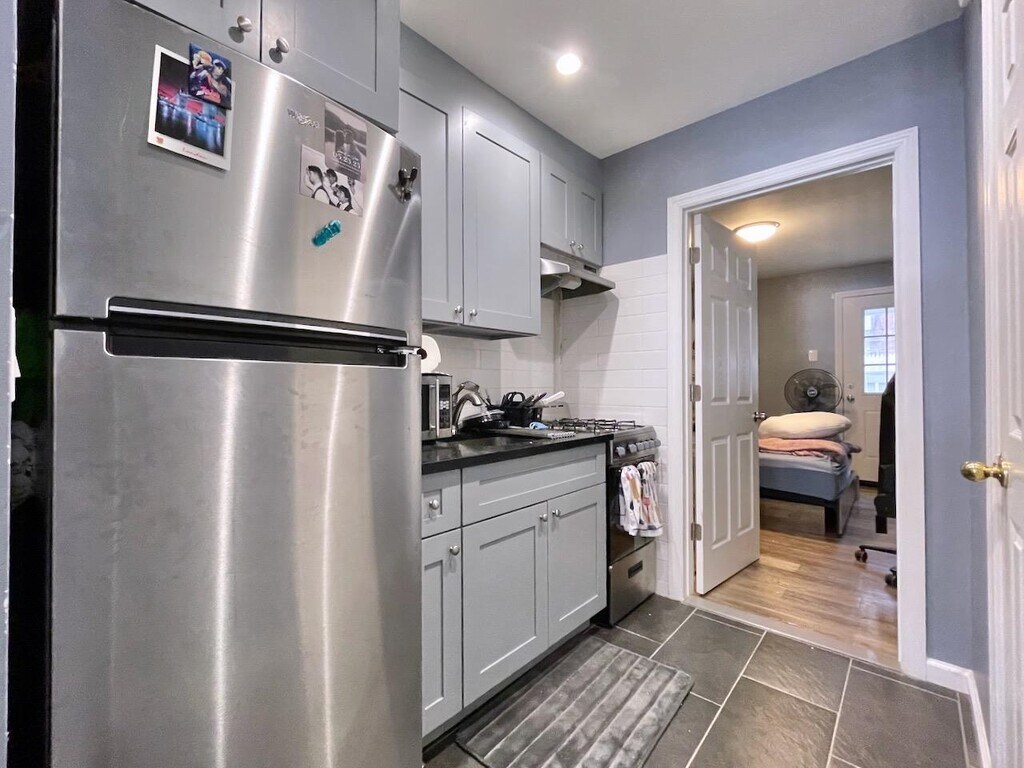 Close to Lincoln Park and Journal Square, this recently renovated apartment comes with washer/dryer, backyard, and driveway parking! The kitchen features a granite countertop, stainless steel appliances, a tiled backsplash, and shaker style cabinets. The bathroom features a matching vanity as well as a fully tiled walk-in shower. The spacious bedroom has a closet, a window, and a door to the backyard. The backyard is shared with only one other apartment. The parking is tandem - two spots shared between two apartments. One spot in the driveway and one spot in the street blocking the driveway. Ask for the virtual tour and reach out to us or your realtor for an in-person tour. Available April 7!