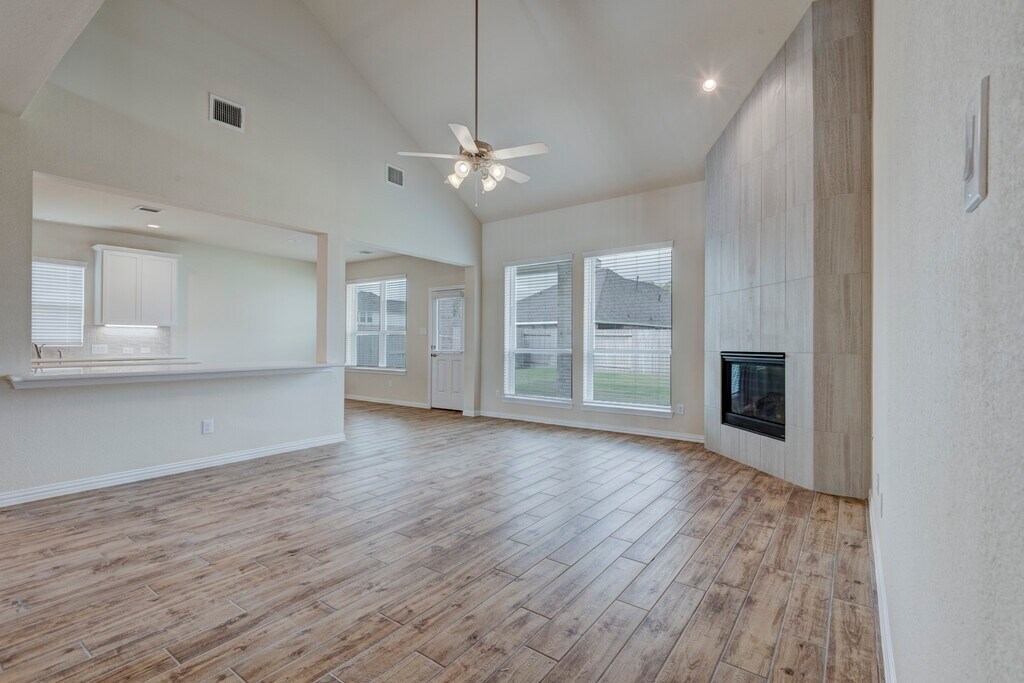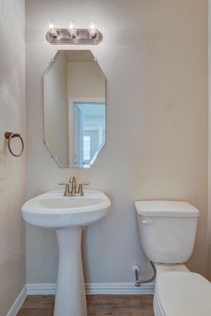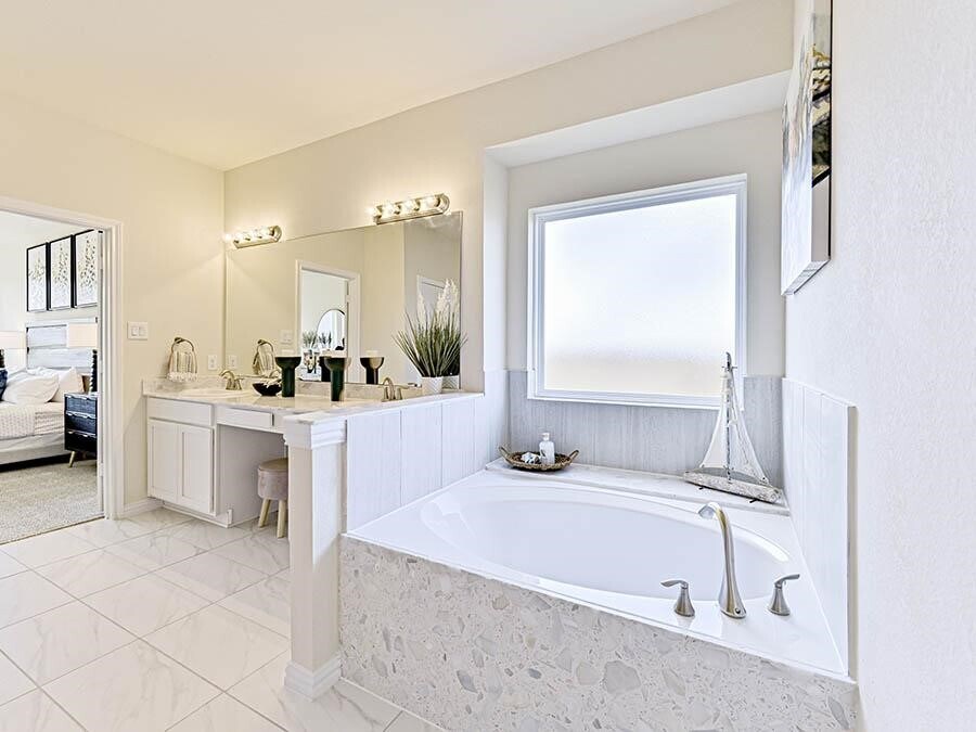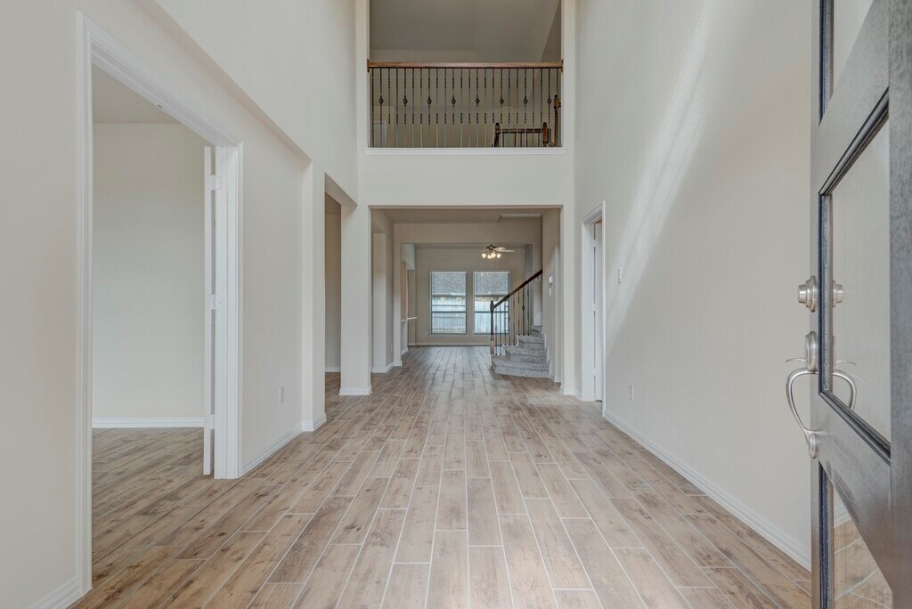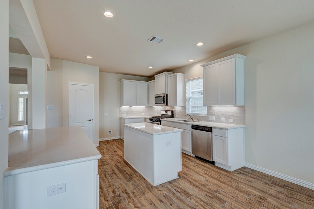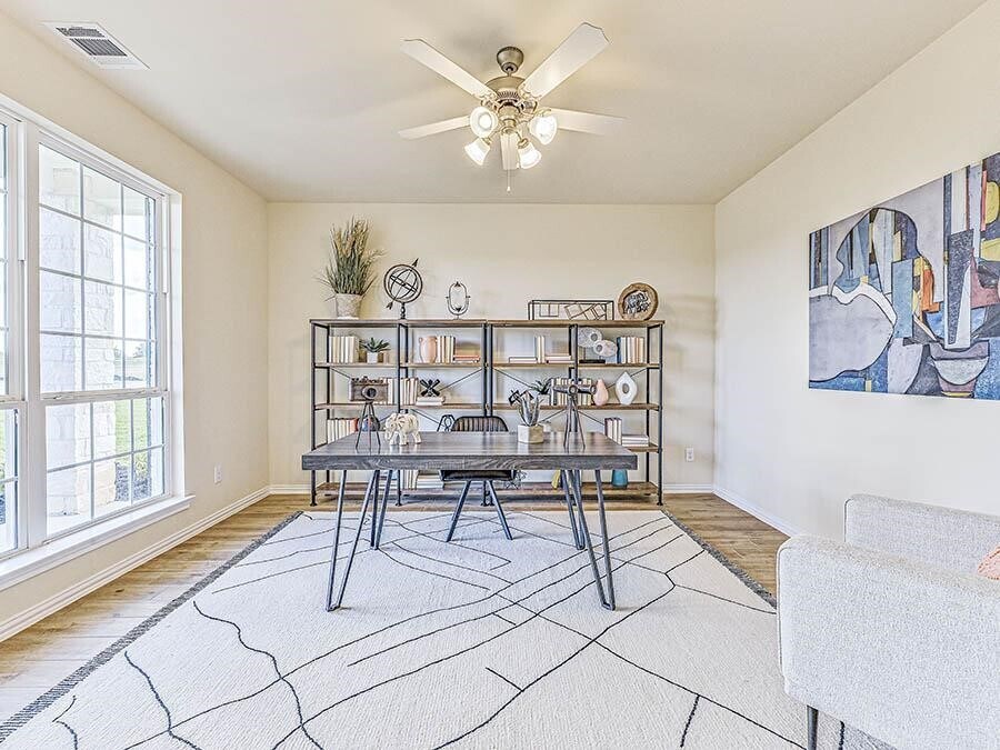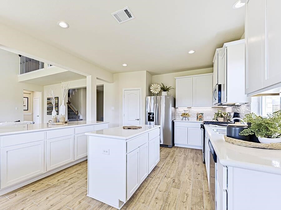 Gorgeous inside! This beautifully manicured former model has stunning curb appeal,and the upgrades continue throughout! Beginning with a charming covered front porch and modern black & glass front door,you're welcomed in to a grand 2-story foyer where you'll immediately notice the tasteful design choices & wood-style flooring that flows throughout. Layout offers a French door study tucked away at the front,while a formal dining room & open-concept great room comfortably accommodate entertaining or daily living. You'll appreciate the awesome flow in the kitchen with double islands! Primary suite downstairs features vanity with knee space where you can enjoy getting ready for your days,a soaking tub & separate shower. Upstairs,find a large loft gameroom,3 more bedrooms & 2 more full baths. The living space continues outdoors to the covered back patio,convenient to the kitchen for grilling out,and a large fenced backyard. This stylish home is located in Town Creek Crossing! MLS# 69970267