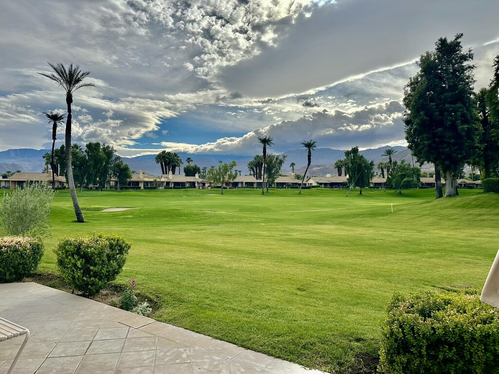 Enjoy breathtaking vistas from the expansive patio of this beautiful 2-bedroom plus den end unit. This turnkey-furnished gem features a king-sized master bedroom,two twin beds in the guest room,and a pull-out sofa in the den,making it perfect for accommodating guests. With vaulted ceilings and nearly 1,600 sq ft of living space,the open floorplan feels both spacious and inviting. Upgrades include dual-pane windows and a newer gas stove,enhancing both comfort and efficiency. Monterey Country Club is the ultimate desert retreat,offering a perfect blend of relaxation and luxury. Don't miss the chance to make this stunning property your own!