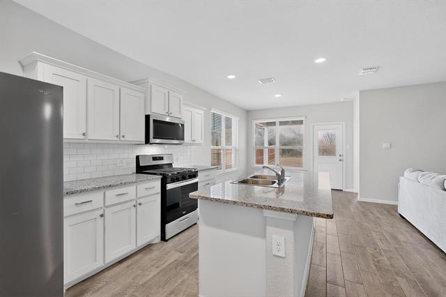 Gorgeous 4 bedroom ready now! Large Island Kitchen, Stainless Steel Whirlpool Appliances, Gas Range, High Power Microwave with vent-a-hood and Walk-in Pantry opening to Dining and spacious Living at the rear of the home. Luxurious primary Bedroom with over sized Shower and Walk-in Closet. Granite Countertops in Kitchen and Cultured Marble in both baths. State-of-the-art energy efficiency features include polyfoam seal, tankless Water Heater, Wi-Fi thermostat, TAEXX Pest Control System, Home is Connected Smart Home Technology Pkg, partial Gutters, Garage Door decorative hardware, covered back Patio, 6 foot stained wood fence with metal posts, Sprinkler System and more! Community Pool, Cabana, Walking Paths, Park, basketball court. Has washer, dryer and refrigerator ... AND ... Internet and lawn maintenance included.