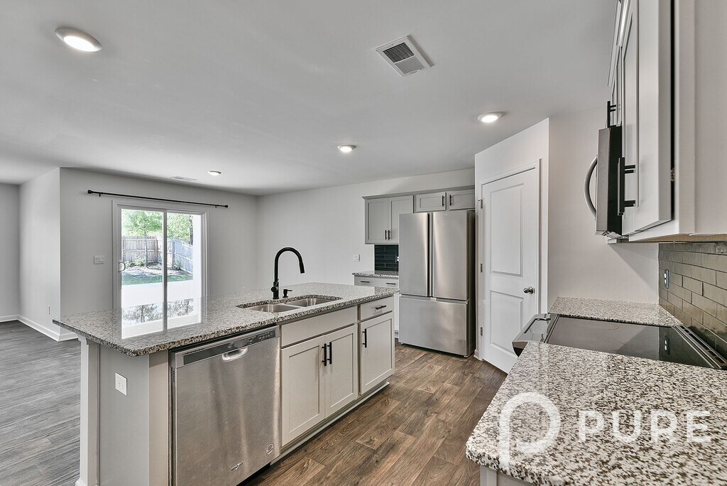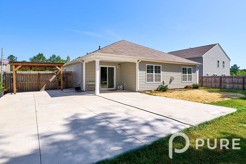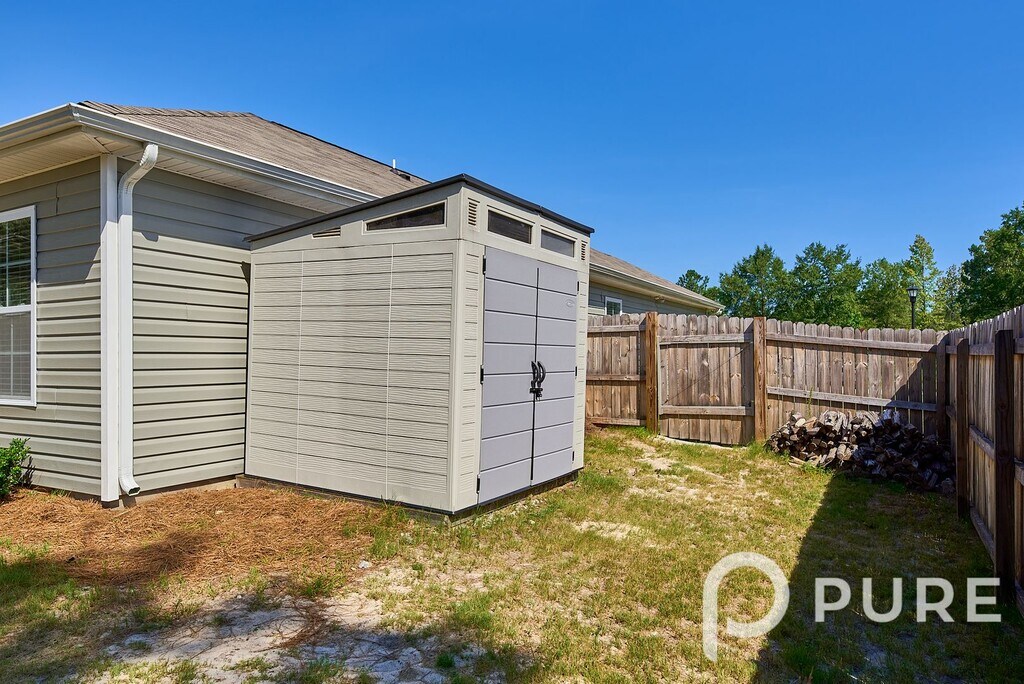Awesome 4 bedroom, 2 full bath home in the Spring Haven subdivision in Lugoff near NE Columbia. This home sits on a cul-de-sac and has a covered front entry, 2-car garage, and privacy-fenced backyard with oversized patio, covered space, and a storage shed. Inside boasts luxury vinyl plank flooring in the foyer and main living area. Family room w/ gas log fireplace and dining area open to the kitchen island bar counter. Kitchen features granite counter tops, black subway tile backsplash, pantry, and included stainless steel smooth-top stove, built-in microwave, dishwasher, and French door refrigerator. Primary bedroom suite has a walk-in closet and full bathroom w/ double sinks and large shower. Three additional bedrooms, a 2nd full bath w/ custom tile floor, and full-size laundry room off the entry hall. Convenient to I-20, Fort Jackson, NE Columbia, and Camden. Kershaw 1 schools. All PURE Property Management residents are enrolled in the Resident Benefits Package (RBP) which includes renters insurance, HVAC air filter delivery (for applicable properties), credit building to help boost your credit score with timely rent payments, $1M Identity Protection, move-in concierge service making utility connection and home service setup a breeze during your move-in, our best-in-class resident rewards program, and much more! More details upon application. This property comes equipped with Gig-Speed Internet at $65.00/month!