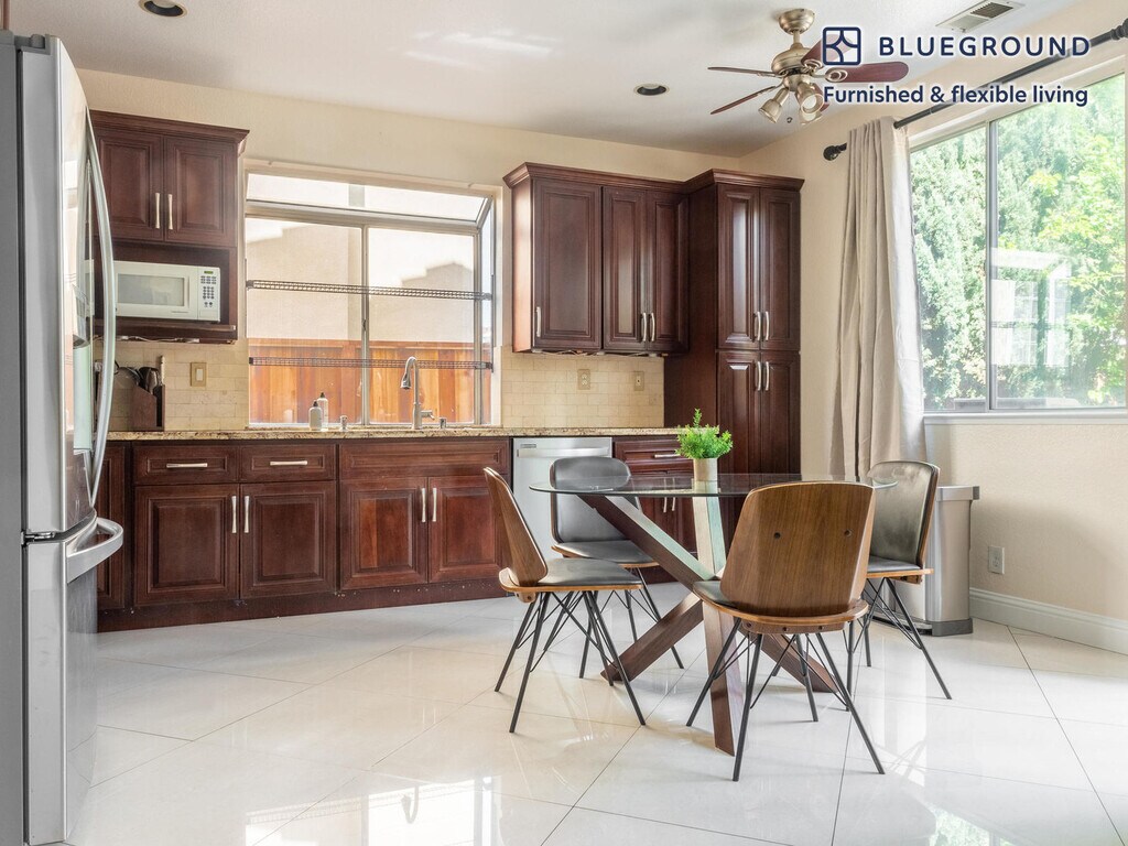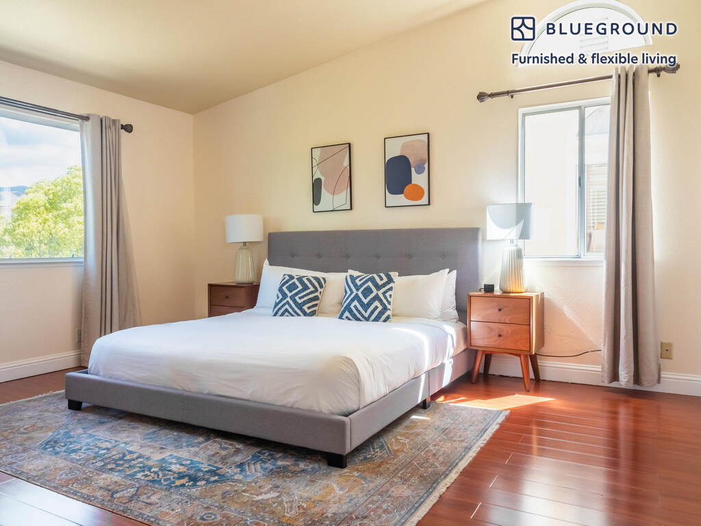 Discover the best of Milpitas, with this four bedroom house in Milpitas. It’ll be easy to simply show up and start living in this fashionably furnished house with its fully equipped kitchen, charming living room, and our dedicated, on-the-ground support. (ID #SFO1623) The advertised rate of $4,540/month is the lowest available price, based on a 1 month(s) and 24 day(s) stay with a move-in date of March 1, 2026. If you’re looking for a 1-year stay, the rate is $4,670/month. Rates vary depending on the duration of stay, season, and other parameters. For exact pricing and additional pricing components, please visit our website and enter your desired move-in and move-out dates. The rate is applicable when billed upfront; it can be higher if billed in multiple payments. Brokers are welcome to reach out. Were you looking for an unfurnished lease? Try Blueground instead and upgrade from unfurnished to furnished living: - Furnished at rates comparable to unfurnished - No setup or furniture costs - save thousands - Move-in ready - save time, just bring your suitcase Designed with you in mind Gorgeous furniture, fully equipped kitchen, smart TV, and a premium wireless speaker are just a few of the amenities you’ll find inside this four bedroom house. Ideally located in Milpitas, you’ll find a lot to love outside as well. When you’re ready to relax, you’ll be happy to discover every Blueground bedroom comes with superior quality mattresses, luxury linens, and cozy towels. We handle everything so you can simply show up and start living. This house also offers in-house laundry. Sleeping arrangements King Bed, 70.8in/180cm King Bed, 70.8in/180cm Queen Bed, 63in/160cm Queen Bed, 63in/160cm Amenities Building amenities unique to this four bedroom house include an on-site: - Dryer - Washing machine - Parking - Pets allowed Arrival and ongoing support The entire house is yours to enjoy! Throughout your stay, you’ll have access to our Client Experience team through the Blueground App. You can schedule additional cleanings, submit maintenance requests, and view our neighborhood recommendations with just a few taps. We’ll share all details upon confirmation of your stay. Ideally Located This furnished home is located in Milpitas in Santa Clara County, just north of San Jose. Set between the two major freeways (I-880 and I-680) of Silicon Valley, Milpitas is prized for its convenient location and is home to Cisco, Lifescan, SanDisk, and several other major tech companies. The city is diverse and has a well-educated population and excellent schools, making it a good choice for families. Milpitas is home to great shopping, including notable Asian markets and The Great Mall of the Bay Area. While most residents rely on cars to get around, a light rail line opened in 2004, and an extension of BART is planned for the near future. Milpitas is progressive and conveniently located, making it an ideal Bay Area location. Other things to note This Blueground house has flexible lease options, allowing you to book it for one month, a year, or more. Pets are welcome, though weight limits and breed restrictions apply and may incur fees. Parking is offered based on availability and is subject to a fee. Please keep in mind that this is a walk up building. We take great pride in ensuring every photo displayed is shot in our own units with our actual furnishings. That said, we regularly refresh our decor and furniture arrangement, which may differ from what’s pictured. [SI]