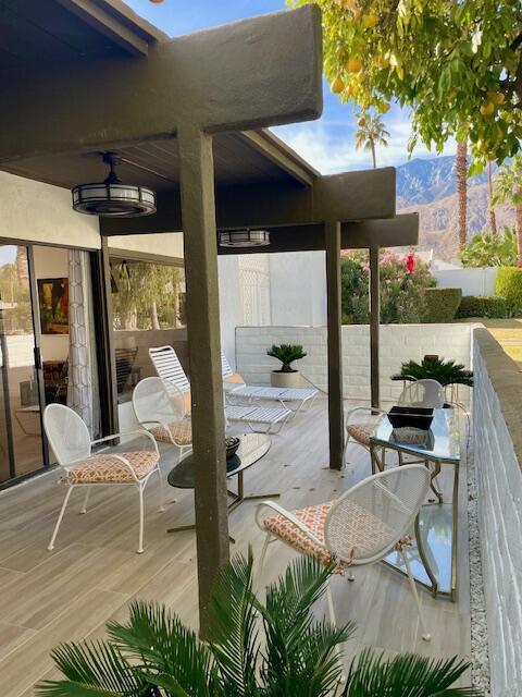 Spectacular,turn-key furnished,2 bedroom/2 bath condo for seasonal/monthly rental in desirable South Palm Springs. This newly remodeled,single-story end unit shares only a portion of one wall. Oversized,covered patio is surrounded by fruit trees and has breathtaking mountain views with easy access to pool/spa. Laundry in unit and private,garage parking (with ample guest parking). Casa Sonora has an exceptionally large pool and spa,tennis/pickle ball courts,a small dog park,and is ideally situated within walking distance to shopping,restaurants,and more. All utilities,taxes,and HOA fees included (WiFi,cable,electricity,gas,water,and trash). Paradise awaits! Available for monthly rental OCTOBER-MAY for $4500 per month (all taxes,utilities,and fees included). Also available for $2,750/month JUNE-SEPTEMBER. Please contact Listing Agent via email or text for a link to the Rental Application (including background and credit check).