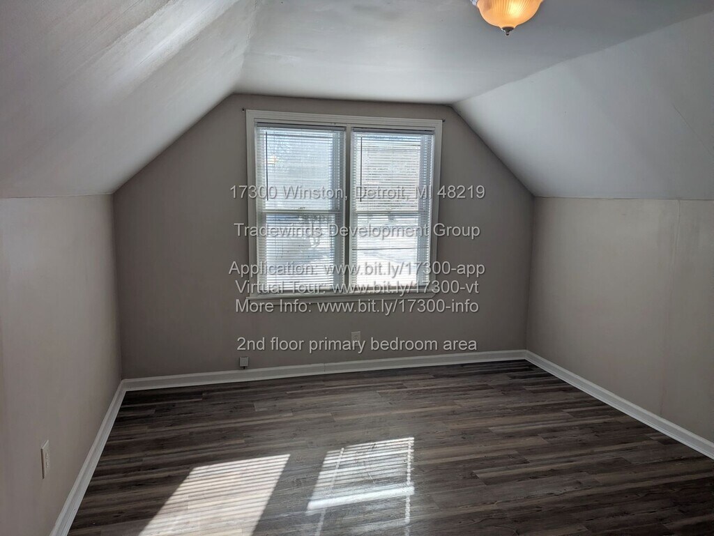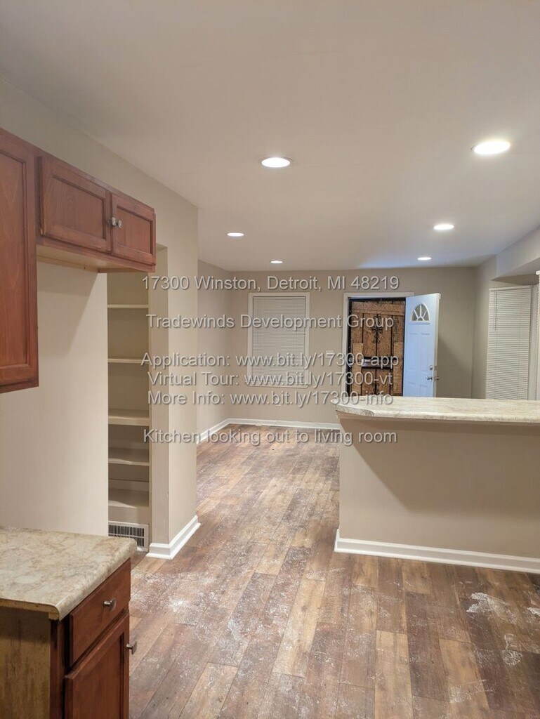 OPEN CONCEPT | GLASS TILE BACK SPLASH | NEW KITCHEN | 2 FULL BATHS | FINISHED BASEMENT | CORNER LOT | 1.5 CAR GARAGE | 48219 All for only $1,300/month in 48219 **SPACIOUS BUNGALOW IN THE EYE** Welcome to 17300 Winston, Detroit, MI 48219 - a 3-bedroom, 2-bathroom bungalow in Detroit's ‘The Eye’ neighborhood. This 1,592 sqft home features open concept living, new kitchen with glass tile back splash, recently renovated bathrooms, finished basement with built-ins, and corner fenced lot with 1.5 car attached garage. **KEY FEATURES & UPDATES** - Move-in ready and available now - 1,592 sqft of living space - Open concept living room and eat-in kitchen - New kitchen with glass tile back splash - New LVP flooring in kitchen - 2 bedrooms on main floor - 1 large bedroom on second floor - 2 full bathrooms - Main floor bath with glass tile shower surround and new flooring - Second floor bath with stand-up shower - Finished basement with built-ins - Fresh paint throughout - New window blinds throughout - Corner fenced lot - 1.5 car attached garage - Front porch with new cement steps **PRIME LOCATION - THE EYE 48219** - Located on Winston between Fenton and Lahser in The Eye - Between 6 Mile and 7 Mile Roads - Detroit Public Schools Community District - Sam's Club nearby for groceries - Close to shopping along Lahser and 7 Mile - Easy freeway access - DDOT transit available - Northland Roller Rink nearby - Parks and recreation close by **RENTAL TERMS & MOVE-IN COSTS** - Rent: $1,300 - Security Deposit: $1,950 (1.5x rent) - Application Fee: $50 per adult (18+) - Admin Fee: $100 one time flat fee - Available: Now Section 8 Welcome! **TENANT QUALIFICATIONS** - Gross income must be 3x the rent ($3,900/month) - Minimum $3,250 to cover first month + security deposit - No evictions or long history of late payments - Bank statements and current ledger required with application **UTILITIES & APPLIANCES** - Utilities: Tenant-paid, giving you full control over usage and providers - Tenant establishes water service directly with provider prior to move-in - Appliances: None included, allowing flexibility for your preferences **PET POLICY** - Small pets may be considered on a case-by-case basis (inquire w/application) Schedule your showing today! Equal Housing Opportunity Professionally managed by TWDG