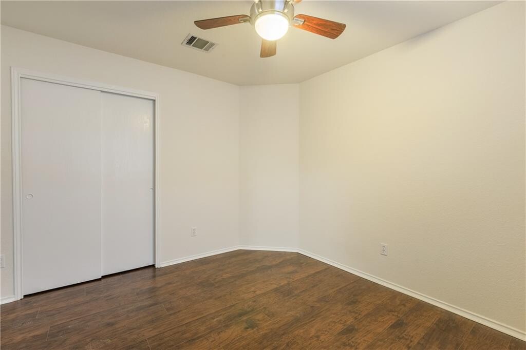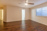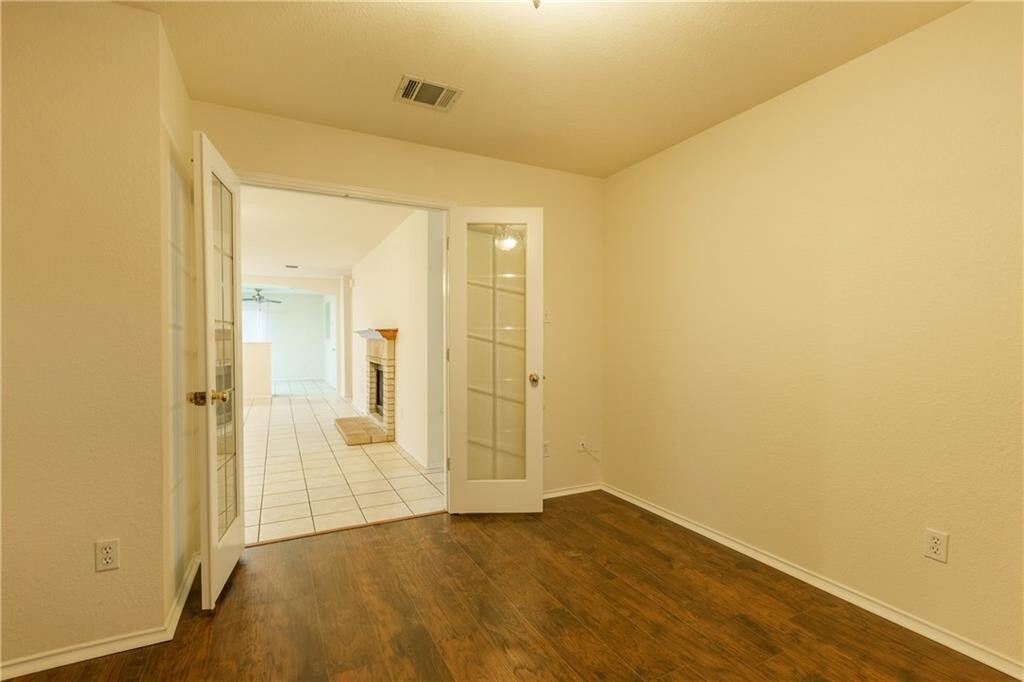 Move-in ready 3 beds, 2 baths with glass french doors opening up to a nice office high-end wood like laminate flooring. Flooring is in all rooms making this home carpet free with the tile complementing the nice wood color. A cozy home with an open floor plan, a a nice sized breakfast area, 2 car garage, and large sized back yard.