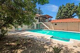This approximately 3698 sq ft palatial home, a combination of Spanish Revival features and Romanesque landscaping is reminiscent of the glory days of Hollywood grandeur. Attractive, wide steps lead into a walkway that proceeds to the double wooden door entrance. Once inside, a wide and roomy foyer provides access to a panorama of rooms including 5 bedrooms, plus a study and 3 1/2 baths, each with a combination of practical and esthetically pleasing features. Built to impress, this beauty maintains many of the original upscale features like custom built-in's, an abode-style fireplace as well as a more modern conventional one, rounded archways, an elegant curved stairway leading to the second floor, and walk-in closets that can also be used as dressing rooms. The primary closet is even equipped with cedar panels. A full service kitchen complete with in set stove top and storage galore awaits food preparation for small soirees or gala gatherings. Several raised platform areas provide both interest and ambience as well as create a separate space without walls or dividers. In addition to spacious rooms inside are generous outside covered walkways, and a gorgeous pool and hard scape patio This backyard area is conveniently accessed via the first floor sliding doors and by the outdoor stairway that villa-like, leads from the second story. A sweeping driveway ushers vehicular traffic to a huge enclosed three car garage in the back of the property. La Loma is primarily a residential neighborhood that reflects the care and attention residents put in their properties. Plenty of business and parks are nearby as are small businesses that provide a myriad of goods and services. Definitely a neighborhood feel within proximity to the city and its amenities.