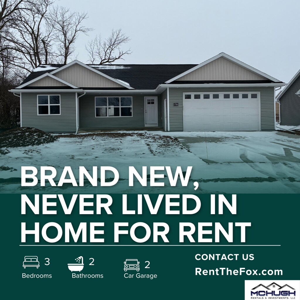 BRAND NEW HOME 1365 Sq Ft- 3 Bedroom, 2 Baths, 2 Car Garage Kitchen Appliances & Washer/Dryer INCLUDED Lawn Care and Snow Removal INCLUDED Forced air furnace (gas) and central air conditioning -Tenant pays utilities LVP flooring throughout home Concrete Patio Security Deposit is equal to 1 months rent Dogs are the only animals allowed. 2 max, must be spayed or neutered. NO CATS $50 per month per dog plus a $500 deposit Rental Qualifications: Please view the Qualifications tab at For 3D virtual walk through of floor plan please copy and paste URL below. Apply online at