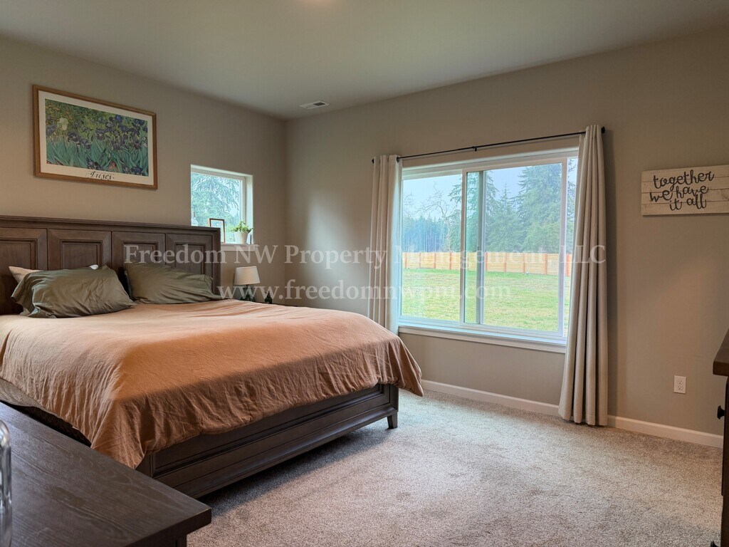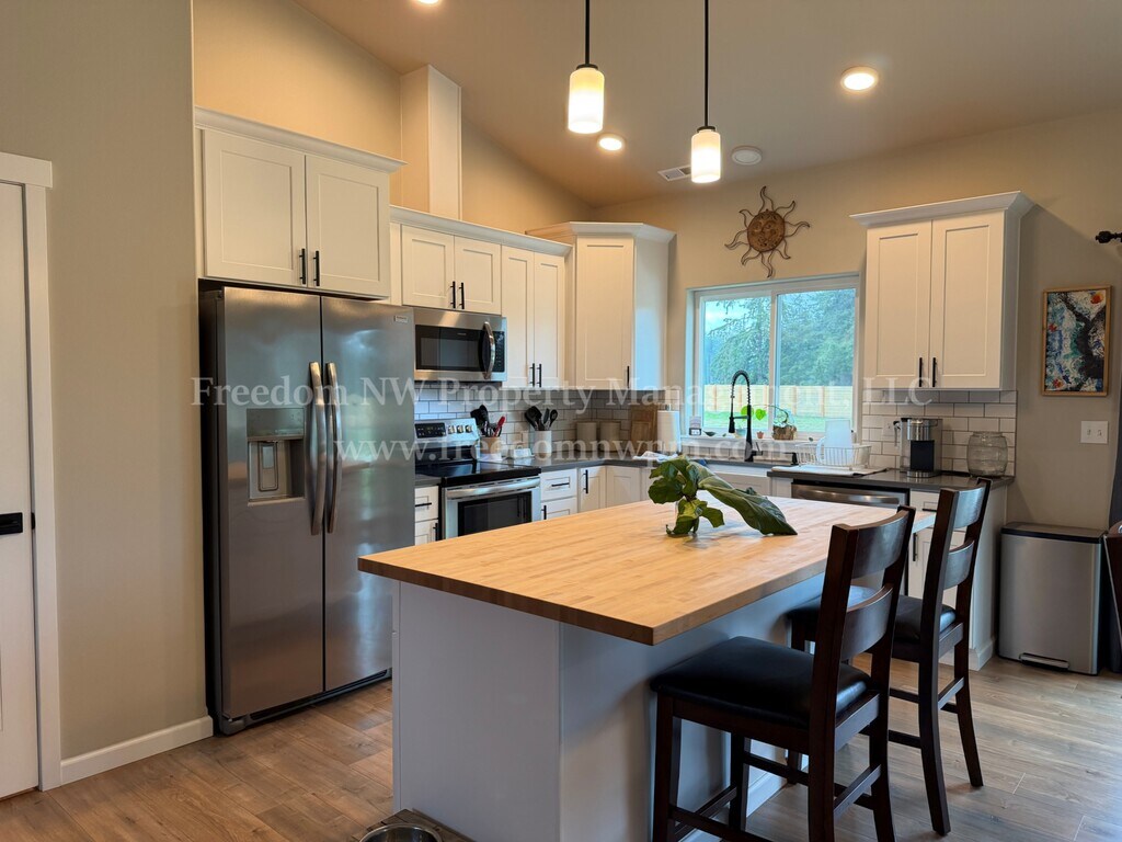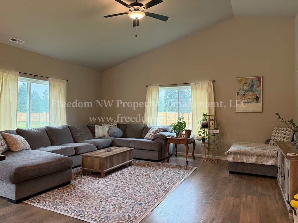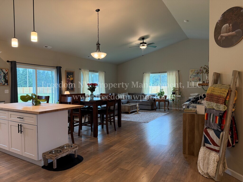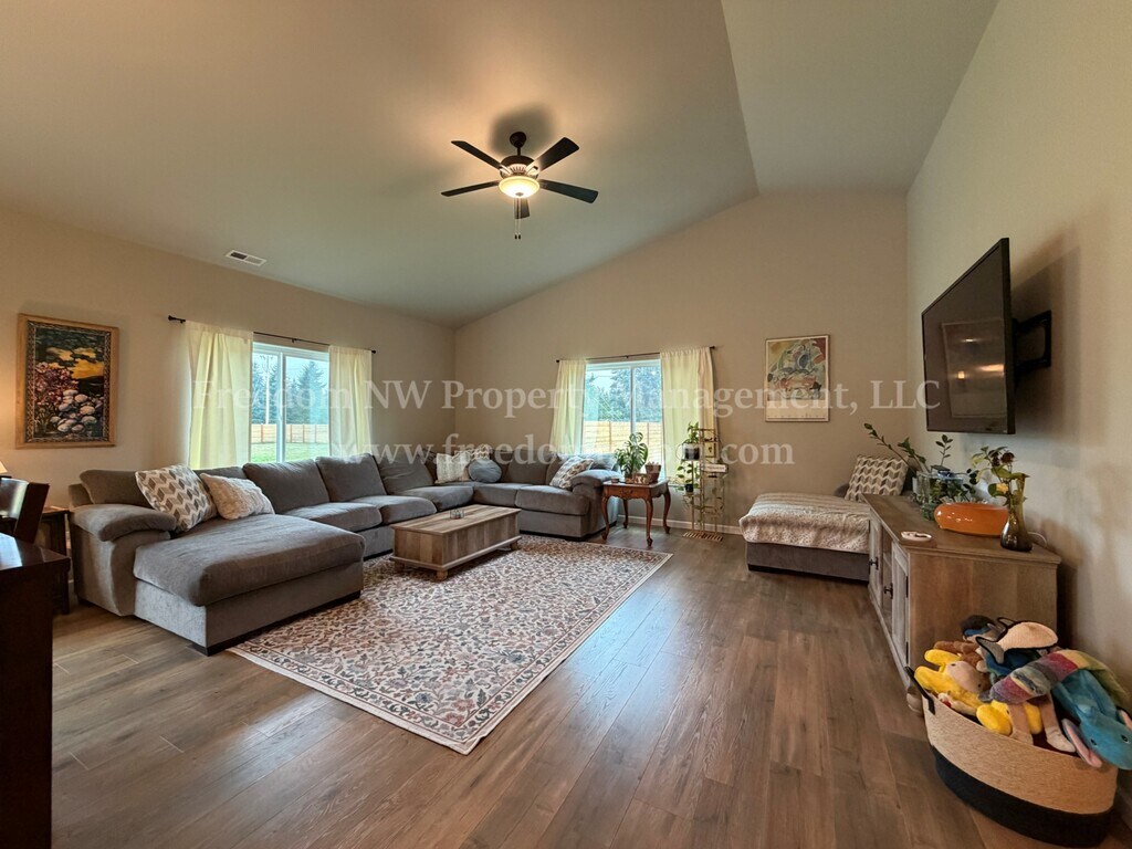 Newer 2022-built home in Rochester offering modern comfort and space on just over an acre! This beautiful 3-bedroom, 2-bathroom home features an open-concept layout with vaulted ceilings that create a bright and spacious feel throughout. The kitchen is designed for both everyday living and entertaining, complete with stainless steel appliances including refrigerator, range, dishwasher, and microwave, plus a large walk-in pantry for extra storage. The primary suite includes double sinks in the master bath, and the main bathroom also features double sinks—perfect for busy mornings. Enjoy year-round comfort with a forced air furnace and heat pump for efficient heating and air conditioning. Outside, the property sits on a fully fenced lot with plenty of room to spread out, along with a two-car garage and ample additional parking space for vehicles, RV, or guests. Pets welcome! Modern construction, functional layout, and room to breathe—this home has it all!