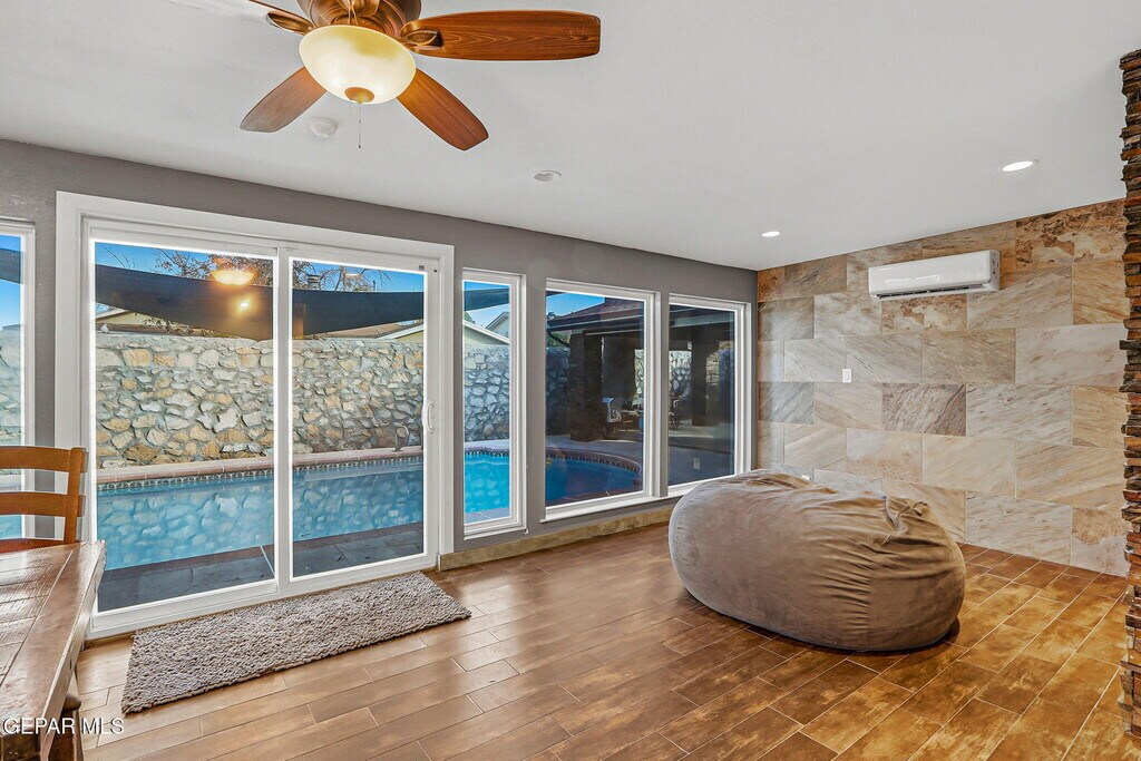 Beautiful and modern 3+ bedroom home with a pool! Featuring great curb appeal and an inviting courtyard,this property boasts an open-concept design with high ceilings. The spacious living area includes a fireplace,while the elegant dining area is perfect for entertaining. The kitchen is equipped with an island,upgraded stainless steel appliances,beautiful countertops,and a stunning backsplash. Adjacent to the dining room,you'll find a second living area filled with natural light and offering a lovely view of the backyard and pool. The primary bedroom includes a shower area and a walk-in closet. Additionally,there are two other bedrooms and one bath. Part of the garage has been converted and is currently used as a bedroom,but it can also serve as an office,playroom,or reading area. The property offers a 1-car garage with an opener. The backyard is ideal for outdoor entertaining,featuring a cabana,shower,and half bath. The laundry room is conveniently located next to the kitchen and provides a spacious pantry/storage area. With approximately 1,835 square feet of living space,this home also includes solar panels. Please note that in addition to the monthly rent,the tenant will pay a flat fee of $200 for electricity usage,which will remain under the landlord's name for the duration of the lease. Monthly pool service is $250. Come and make this beautiful house your home!