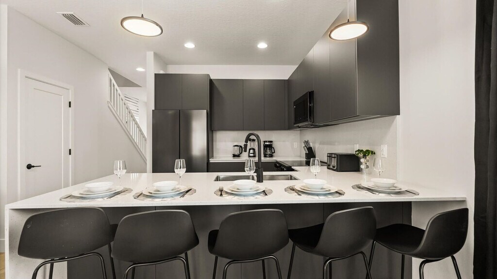 Feel at home in this charming 4-bedroom townhouse in Serenity at Silver Creek. Perfect for families and theme park lovers, this two-story home is thoughtfully decorated and family-friendly. Relaxation and imagination meet with playful themed bedrooms and comfortable modern amenities. The fully equipped kitchen features stainless steel appliances. There is also an in-unit laundry with a washer and dryer. Entertainment is provided by Roku Smart TVs in the living room and bedrooms. Pool heating is available upon request for an additional fee of $35/night, with a minimum stay of 2 nights. A highchair and a pack 'N Play crib are available for a one-time fee of $40 each. Located in a peaceful, eco-conscious community, this Clermont gem is approximately 8 miles from Disney, 15 miles from Universal Studios Florida™, 12 miles from SeaWorld® Orlando & Aquatica®, 10 miles from shopping outlets and major stores, 3–5 miles from grocery stores, dining & local conveniences, and 25 miles from Orlando International Airport (MCO). Guests and residents have access to a resort-style clubhouse that includes a swimming pool, fitness center, and arcade room. Beautifully landscaped grounds and well-kept walking trails create a calm, inviting setting for rest and recreation. Parties, events, and smoking/vaping of any kind are prohibited in or around the property and risk a fine of $150. Late departures will result in a fine of $150 for each additional hour the property cannot be accessed. Outside of service animals, pets are not permitted at this property, and any evidence of pets will result in a fine. Firearms and weapons are strictly prohibited in this home. Quiet hours are between 10:00 p.m. and 7:00 a.m. [SI]