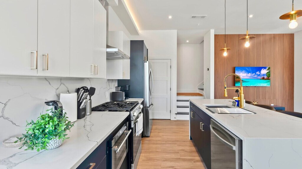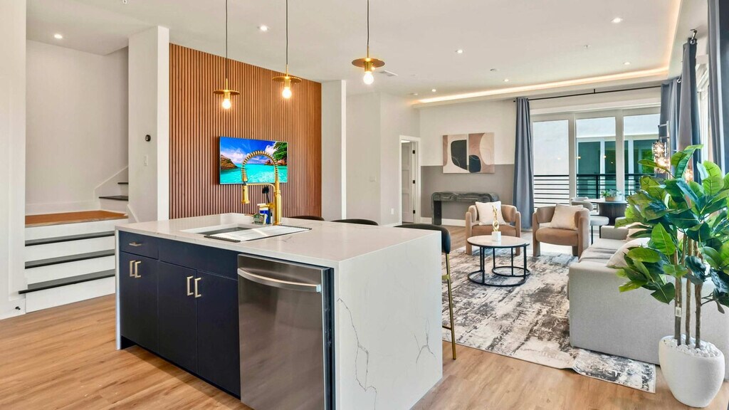 Experience modern comfort in the heart of historic East Dallas with this stylish retreat located on Fitzhugh Ave in the lively Old East Dallas/College Hill neighborhood. This modern 3-bedroom, 1.5-bathroom apartment offers the perfect blend of style, comfort, and convenience, ideal for solo adventurers or couples seeking comfort, culture, and convenience. With its open-concept space featuring sleek LED lighting, warm wood flooring, and contemporary furnishings, you'll feel at home as you enjoy the large windows that flood the space with natural light and showcase stunning city views. The apartment features a fully equipped kitchen with a gas stove, microwave, refrigerator, dishwasher, Keurig Coffee Maker, water kettle, toaster, and a full kitchenware set. The breakfast bar seats four, and the dining table also seats four, providing ample space for meals. Unwind in thoughtfully furnished bedrooms, including a full/twin daybed, a queen bed, and two queen beds, with en-suite full bathrooms and smart TVs in two of the bedrooms. The living room includes a sofa bed, perfect for extra guests. Pets are welcome depending on their size, but you must inform us beforehand and confirm your intention to bring a pet to avoid potential cancellations. An additional cleaning fee per pet will be applied. Fees for bringing a pet vary based on the length of your stay: for stays of 1 to 4 nights, there is a $25 per night charge per pet; for stays of 5 to 29 nights, there is a $200 fee per pet; and for stays of 30 nights or more, the fee is $300 per pet. Welcome to East Dallas, where this apartment is perfectly situated on N Fitzhugh Ave, placing you right in the mix of some of the city’s most dynamic neighborhoods. Within minutes, you can explore the bars and restaurants of Lower Greenville, catch live music in Deep Ellum, or take a peaceful stroll around White Rock Lake. Uptown and Downtown are also a short drive away, offering even more dining, shopping, and cultural attractions. For your daily needs, Trader Joe’s and Sprouts Farmers Market are just a few minutes away, and there are several local coffee spots nearby like La La Land Kind Café, Fiction Coffee, and Foxtrot Market. If you’re looking to stay active, Turtle Creek Trail and the Santa Fe Trail are both close by. Free street parking is usually easy to find, and you’re just a short Uber or Lyft ride from most major Dallas hotspots. All guests must sign a rental agreement outlining the terms of their stay. By making a reservation, you agree to provide a valid government-issued ID before check-in, undergo a background check if required by property management or the owner as specified in the rental agreement and booking terms, and complete our verification process to receive check-in instructions. Guests must provide the necessary information within 24 hours of booking (within 1 hour for same-day bookings). We reserve the right to cancel any reservation that does not meet our verification criteria. [SI]