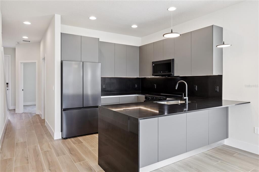 Discover your perfect Clermont retreat! This upscale contemporary 4-bedroom,3-bath end unit townhome features a private screened-in pool,sleek modern kitchen,open layout. Located in a quiet,modern community with easy access to Hwy 27,shopping,dining,and schools. Complementing the open concept floor plan the kitchen features smudge proof dark stainless-steel appliances,quartz countertops,and stunning modern cabinetry. Downstairs bedroom an also double as an office with full bath. Upstairs an oversized primary suite,and 2 additional bedrooms with a full bath. Brand new washer and dryer in unit. Don't miss the opportunity to live in luxury and surrounded by nature,enjoying peace and tranquility. READY FOR IMMEDIATE MOVE -IN! MLS# O6355943