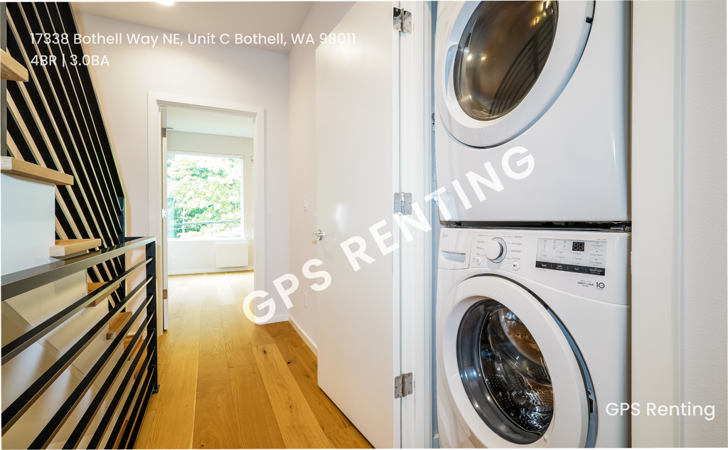 Please use this link to schedule a tour: Experience modern luxury in this stunning new-construction townhome, just minutes from downtown Bothell and the scenic Riverwalk. Featuring 4 bedrooms, 3 bathrooms, and a 2-car garage, this home offers an open-concept layout with high-end finishes throughout. Enjoy hardwood floors, a floating staircase with open metal railing, quartz countertops, curbless showers, and custom-built closets. The chef-inspired kitchen includes gourmet appliances, under-cabinet lighting, and sleek design details. Energy-efficient mini-split heating and cooling, upgraded windows and insulation, and a striking brick-and-cedar exterior provide both comfort and style. Relax on your private rooftop deck or take advantage of nearby trails, dining, and easy access to highways and public transportation. This home offers the perfect blend of elegance, functionality, and convenience. ? Available Immediately! If you're ready to move in or need more than two weeks from your application date, please respond to this listing via email. ? How to Apply: ? Application fee: $55 per adult (18+) ? Apply online: ? Pets: Case-by-case – please contact us before applying! Questions? Email us at 2 Car Garage Parking Dryer N/A Rangehood Sprinkler Townhouse Washer