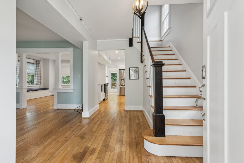 3 Bedrooms, 1.5 Bath Single Family home with 1,464 sq.ft. Lovely early 20th-century home located in the popular Lafayette-Winona area. Open Concept Layout, Kitchen with Stainless Steel Appliances, Refrigerator, Electric Stove, Dishwasher, Microwave, Stainless Oversize Farmhouse Sink, Beautiful Granite, Newer Counter Tops, Island with Breakfast Bar, Walk-In Pantry Tons of Natural Light,, Recessed Lighting, Modern Fixtures, Laundry Room with Front Load Washer & Dryer (as-is), Remodeled Bathrooms, Walk In Closet, Ceramic Tile & Hardwood Flooring Throughout, Mounted Flat Screen TV in Primary (as-is), Covered Front Porch with Swing, Large Back Deck Perfect for Entertaining, Large Backyard with Playground (as-is), Detached Garage, Long Driveway, Lots of Parking! Central Heat and Air, Gas Water Heater, Utility Room.