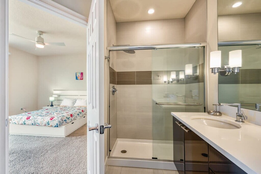 Discover tranquility in this 3-bedroom retreat featuring a private pool. With spacious living areas and a full kitchen, this townhome is part of the serene Serenity Community Club, offering a peaceful escape. Indulge in comfort in this 3-bed, 3-bath townhome. The spacious living areas seamlessly connect to the dining room and well-equipped kitchen. Unwind by the private, heatable pool. The first floor hosts a convenient queen bedroom and bath. Upstairs, find a tranquil master king bed suite, another bedroom with two single beds, and its own bath. A laundry room with washer and dryer adds convenience. Enjoy free Wi-Fi, effortless parking, and a welcome kit. Heating the pool is a paid service and there is also a fee charged to use the barbecue grill. Situated amid 30 acres of untouched natural conservation, Serenity unveils breathtaking panoramas of Florida's tranquil waters and serene landscapes. Elevating the community's charm, a shared club awaits guests. This exclusive haven hosts an array of offerings, including a resort-style pool that beckons relaxation, a fully equipped fitness center catering to health enthusiasts, and an inviting playground for the young and young at heart. Quiet hours are between 22:00 and 8:00. Replenishment of bathroom and kitchen amenities is the guest's responsibility. [SI]