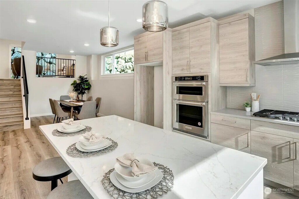 This new construction (UNIT B), designed for modern living, this 3 bed, 3 bath split-level townhome offers an innovative floor plan with luxury finishes in more than 2,150 sq.ft. of living space, including a spacious bonus room and 2-car garage. These are the only building types with a rooftop deck overlooking the evergreen surroundings and is located just around the bend from DT Bothell, the sprawling waterfront of St. Edwards Park, and is a block away from the 27-mile Burke-Gilman Trail. Within 30 minutes to top destinations including DT Seattle, Microsoft, Google, & DT Bellevue. Move-in ready. Served by the Northshore School District. The pictures are for representation purposes only and the house is not furnished. Reve 59 Lot 2, beside the public storage close to the Bothell Way NE. Address: 17347 90th Dr NE, Unit B, Bothell WA 98011 Tenant pays the utilities.