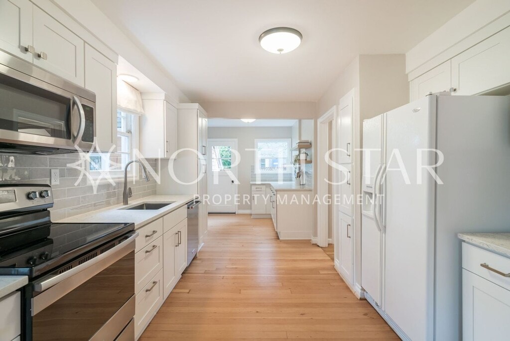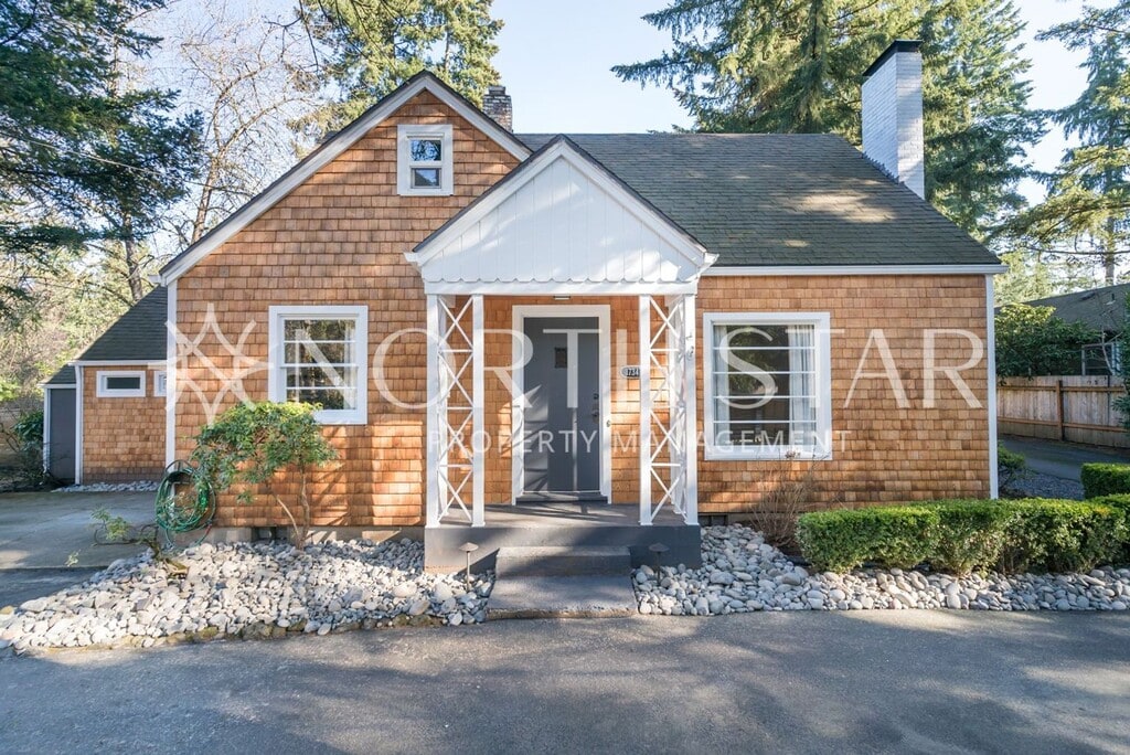 This wonderful 1940’s home has just had a a major remodel where just about every surface has been redone. From the outside new fencing and lighting to the inside new kitchen and bathrooms, carpet, refinished hardwoods, paint, fixtures and more. Located in the highly desirable Canal District of Lake Oswego, the renter may enjoy lake access by joining either the Blue Heron Easement or the Lakeview Recreation Club. Walking distance to Lakeridge Middle School and located within the Westridge Elementary and Lakeridge High School district, these are some of the highest rated schools in the nation. Entering the home you will find a spacious living room with a bay window and a fireplace. This leads into the brand new kitchen that has a breakfast nook and a doorway to the large back yard. Off of the kitchen is a vaulted bonus room that is perfect for watching movies or as a play room. The master bedroom is on the main floor, as is one of the full bathrooms. This bathroom has a tub/shower combination and features new tile, counter, vanity and fixtures. Upstairs are two nicely sized bedrooms and a brand new bathroom with a shower. This home does not have a garage, but plenty of parking spaces. It is a short walk to Aji Tram and Deno’s pizza as well as Jefe, La Provence and Zupans. No pets please. Washer and Dryer included. One year minimum, longer term lease is available.