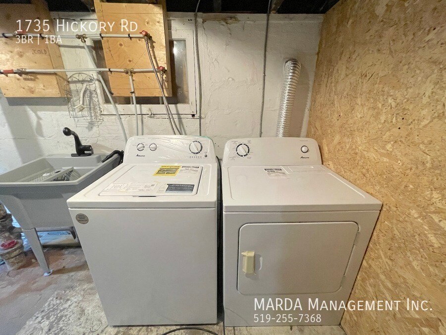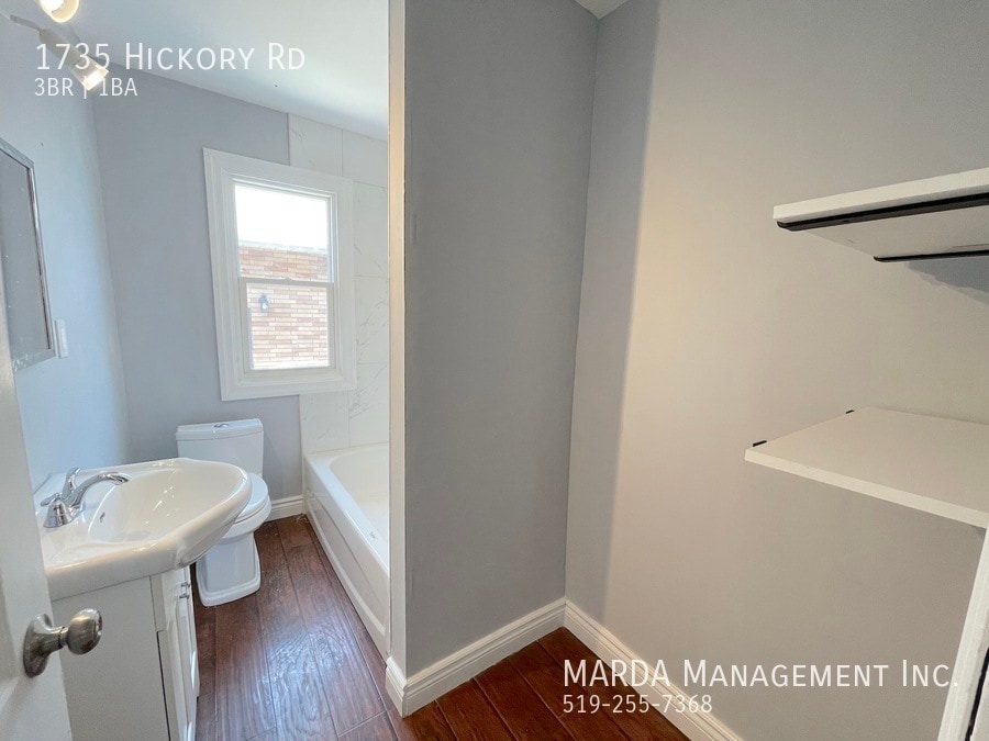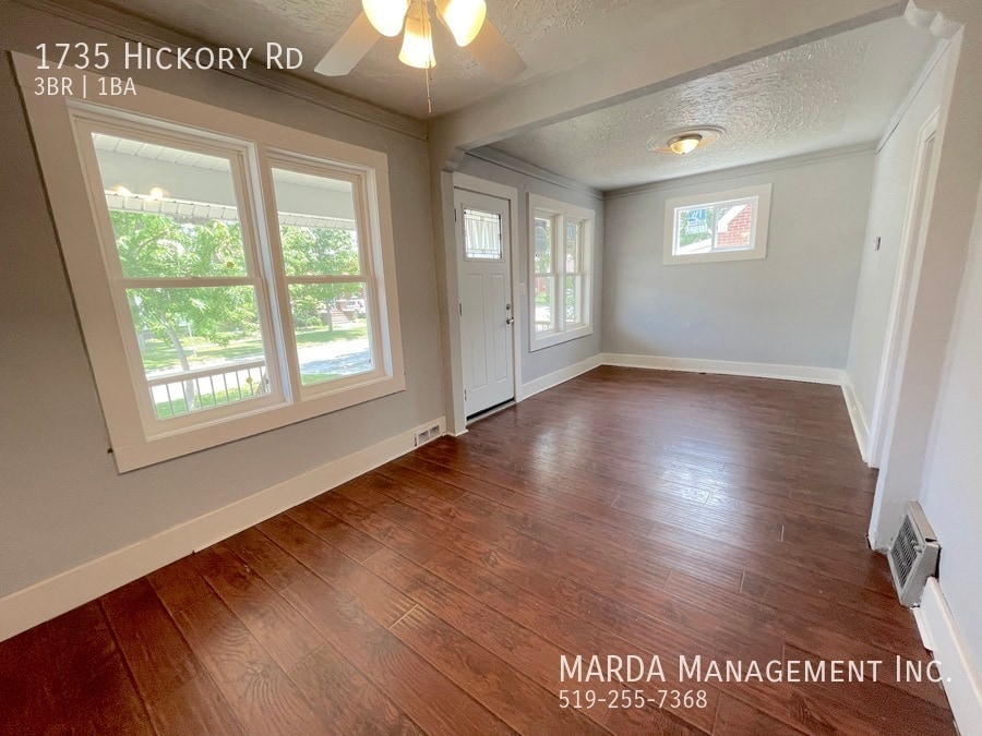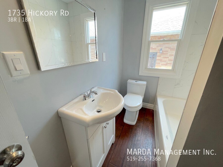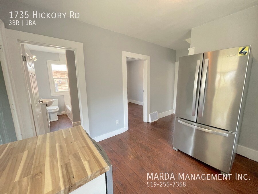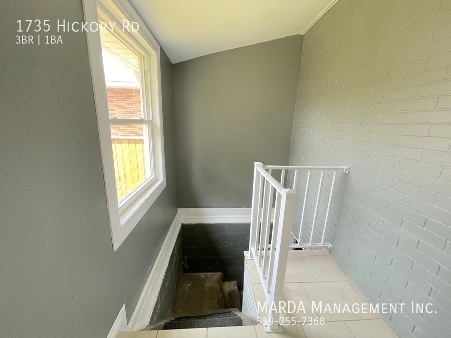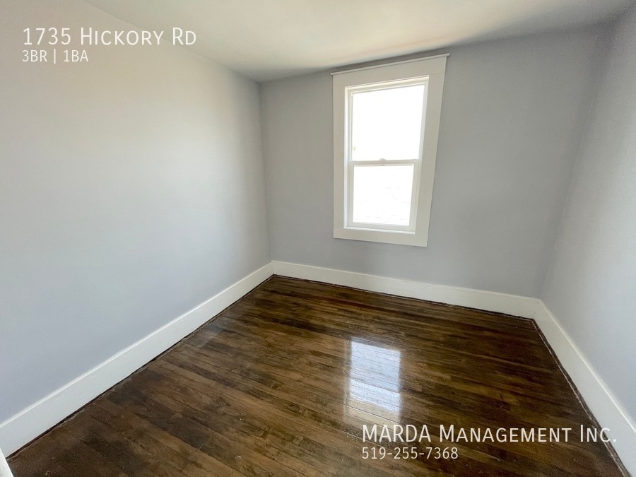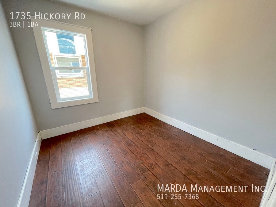 Welcome to 1735 Hickory, a beautifully crafted home in a family-friendly area offering style, comfort, and convenience. Inside youll find elegant hardwood flooring throughout, a bright living room filled with natural light, and a modern kitchen featuring stainless steel appliances, butcher block countertops, subway tile backsplash, and white cabinetry to the ceiling. The layout includes three cozy bedrooms, two upstairs for added privacy and a luxurious full bathroom with a tub/shower combo dressed in marble-look tile, a modern vanity, and added storage. An unfinished basement provides in-suite laundry and ample storage. Step outside to a cozy deck overlooking a large backyard with a storage shed, plus a spacious front porch. Central A/C and heating and driveway parking complete the package. Located near bus routes, schools, and parks, and about 10 minutes to Tecumseh Rd E for shopping, dining, and everyday essentials. Tenant responsible for hydro, gas, water, lawn care, and snow removal. One-year minimum lease. First and last months rent and a credit check are required. Professionally managed by MARDA Management, offering 24/7 maintenance support with live agents and easy rent payment options. Call MARDA MANAGEMENT today at or email to schedule your viewing! Driveway Parking Fenced Back Yard Freshly Painted No Smoking Allowed Pet Friendly