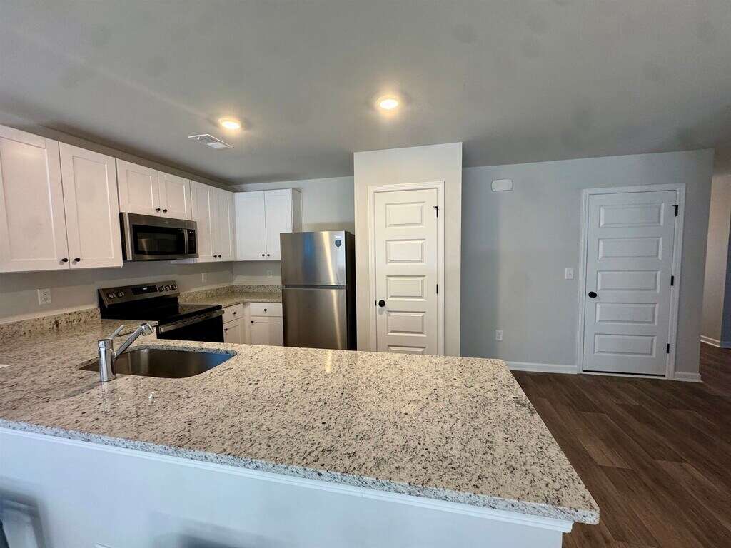 Available as an annual rental now! This brand new,never lived in,3 bedroom,2 bathroom home is located in Kingston Oaks,just minutes from downtown Conway. This home offers a spacious and inviting,open floor plan with thoughtful finishes throughout. The kitchen features granite countertops,stainless steel appliances,a breakfast bar,recessed lighting,and a pantry. The kitchen overlooks the main living and dining areas creating a functional space that flows effortlessly for everyday living. The primary suite is thoughtfully positioned for privacy and features a walk-in closet and private ensuite with a large vanity and walk-in shower. The secondary bedrooms are located on the opposite side of the home and share a well-appointed hall bathroom with a tub/shower combination. There is also a laundry room with washer and dryer and a 2 car garage. Step outside to the back patio and enjoy your morning coffee or evening cocktail with peaceful wooded views and beautiful sunsets. Community amenities coming soon include a pool,playground,covered seating,and restrooms. Kingston Oaks is just a short drive to the charming,historic district of downtown Conway,as well as shopping,dining,entertainment,healthcare,and more. Don't miss this one! Schedule your showing today. NO smoking. Pets may be considered.