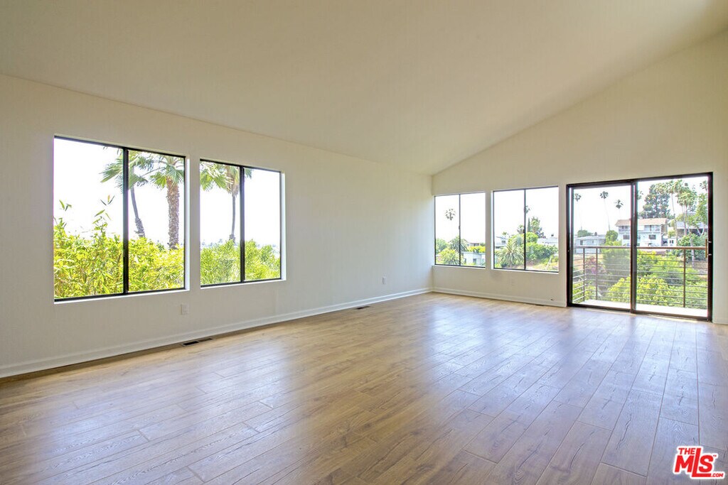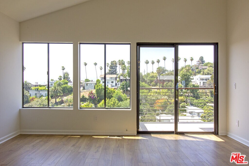 Welcome to this contemporary Spanish perched high in the hills of Silver Lake with panoramic views of the hills, city and even the ocean beyond! This townhouse style duplex home shares one wall with the unit next door, and features its own one car garage and driveway. Enter into the dramatic light filled open plan living/dining area with high ceilings and a large balcony to enjoy the scenery. A roomy kitchen with plenty of storage, a breakfast area, and a powder room complete the main level. Head downstairs to the huge main bedroom suite with its own balcony and double sink vanity area, along with two other bright, spacious bedrooms, a hall bath and laundry room. Nest thermostat and wifi enabled dimmers throughout the home. Newer Pergo flooring and appliances all highly rated by Consumer Reports. All this just minutes from the best restaurants and boutiques on Sunset and Silver Lake Blvds, along with the nearby Silver Lake reservoir and dog park. Available for immediate occupancy! MLS# 25624409