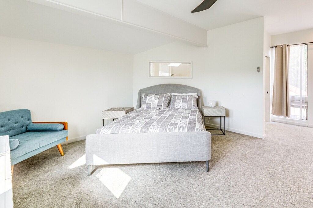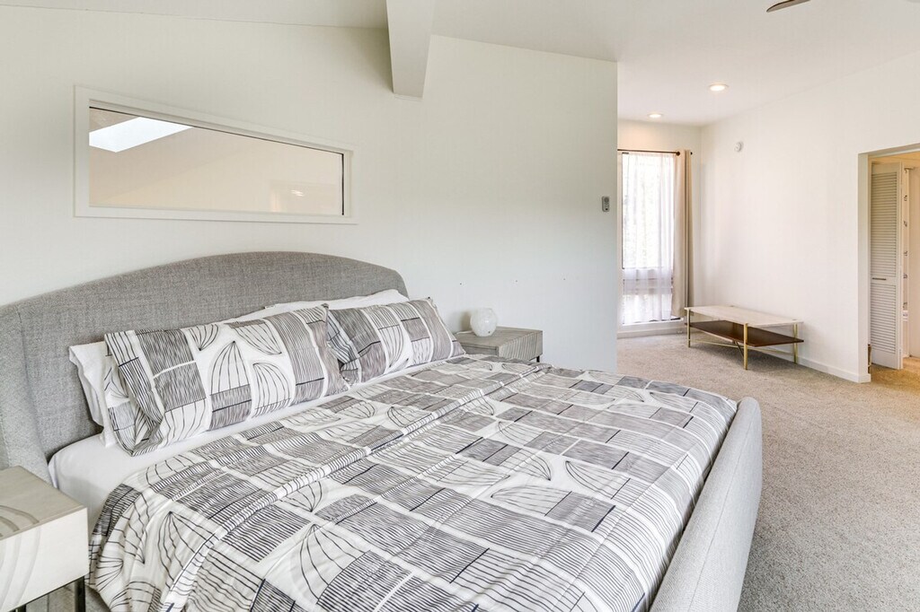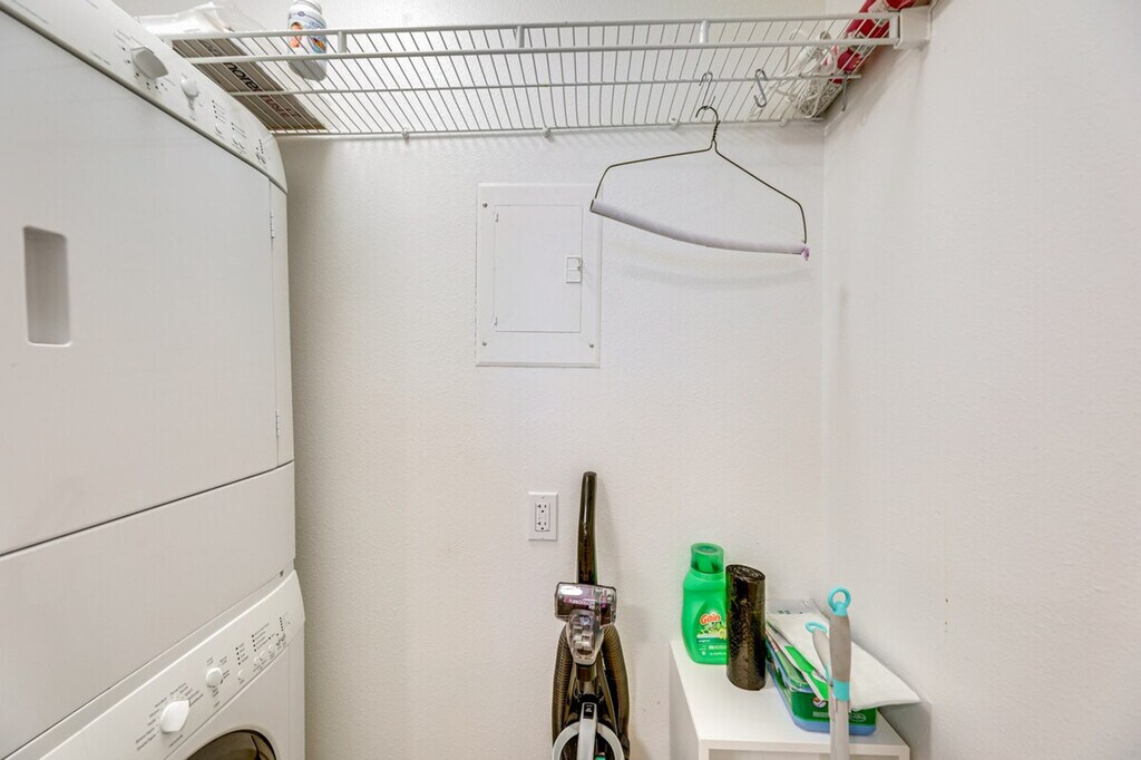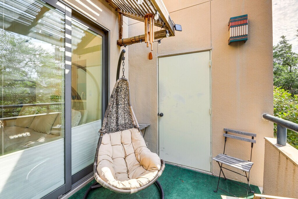 Feel at home in this vibrant Austin condo, boasting a peaceful location in Barton Hills. This 2-bedroom, 2-bath condo is located on the second floor and requires using an exterior staircase to enter. This condo features an open floor plan with a flat-screen TV, fireplace, dining table, and high chair. The kitchen is equipped with a refrigerator, stove/oven, dishwasher, drip coffee maker (coffee provided), blender, toaster, cooking basics, dishware and flatware, ice maker, trash bags, and paper towels. Additional amenities include central heating and A/C, electric heating, a washer/dryer, laundry detergent, an iron and board, linens/towels, complimentary toiletries, a hair dryer, and keyless entry. Community parking is available for up to two vehicles. Enjoy easy access to hiking trails and the community outdoor pool. The condo is conveniently located near Lady Bird Lake and downtown dining and nightlife. Quiet hours are observed from 10:00 PM to 10:00 AM. Includes a laptop-friendly workspace. [SI]