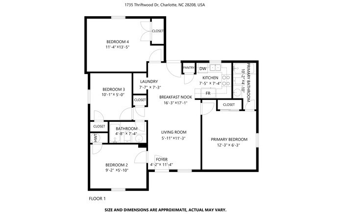 Located in the Toddville Road Neighborhood, 1735 Thriftwood Dr is in the 28208 Zip Code of Charlotte, NC.