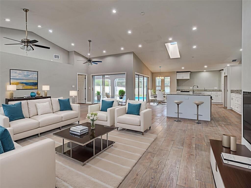 One or more photo(s) has been virtually staged. Experience the ultimate in luxury living with this completely remodeled home featuring your dream kitchen,abundant storage,and spacious bedrooms. Step outside to a stunning heated pool complete with a large sun shelf and splash pad,perfect for relaxation and entertainment. The oversized lanai offers ample space for both lounging and dining,with convenient access to a bathroom directly from the pool area. Enjoy seamless indoor-outdoor living with sliders from the living room,dining room,kitchen,and master bedroom that open to the lanai and pool. With a new roof and skylights,this home is bright and inviting,exuding warmth and love from the moment you enter. Rest easy knowing this property has never flooded or experienced water intrusion,even during hurricanes. The large yard is already fenced in for the safety of your pets. Must see!! MLS# C7514524