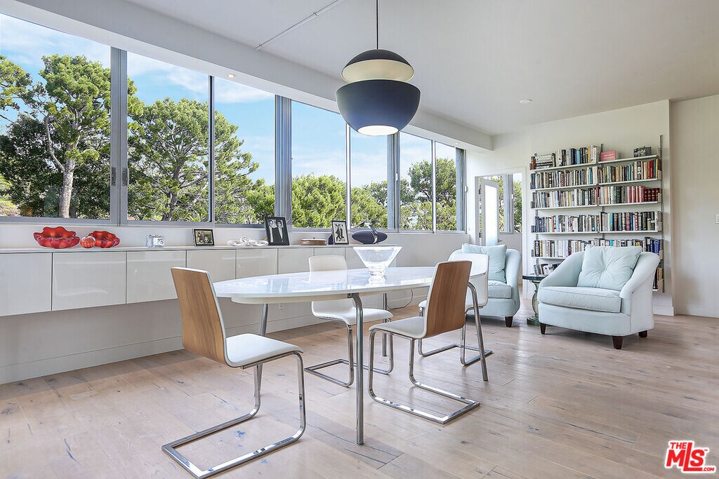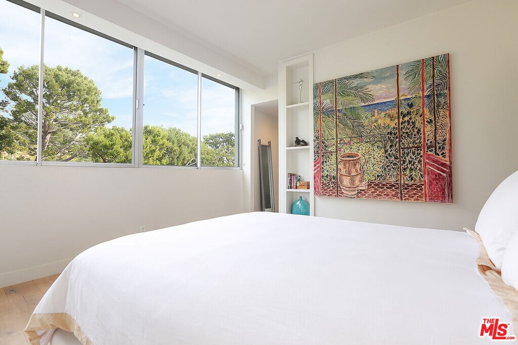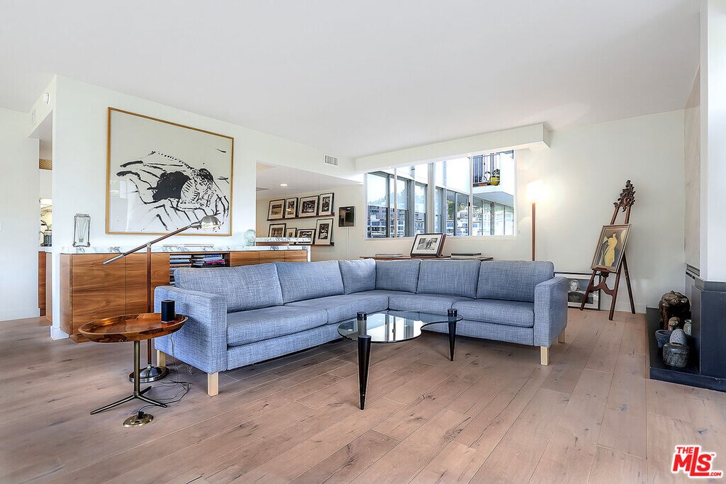 Discover this exquisite 2 bedroom, 2 bathroom condominium at the full service Edgewater Towers perched hillside just 100-yards from the Pacific Ocean. This unit's minimalist design is polished by modern architectural finishes that complement its mid-century roots. Picture windows span opposing walls for natural light and ocean cross breezes to flow, treetop views, and glimpses of the ocean. An open floor plan allows for effortless movement and features hardwood floors throughout, a white marble slab fireplace with black slate hearth in the living room, and a sleek, modern kitchen anchoring the entire space. Rich wood lower cabinets are balanced by the white high gloss uppers, stainless steel appliances, and floor to ceiling white quartz slab countertops and backsplash. The primary bedroom has built-in shelving, walk-in closet, and ensuite bath with slate flooring and glass enclosed double shower and soaking tub. The second bedroom offers beautiful canyon views and ensuite bath. Sip coffee on your private balcony, or enjoy the Edgewater Towers amenities such as basketball and tennis courts, fitness center, heated pool and spa, and 24-hour security. Close to hiking trails, shopping, Will Rogers State Beach, and a quick drive down PCH to Santa Monica or up to Malibu. Second bedroom no longer has built-in desk and murphy bed as shown in photos. MLS# 25625691
