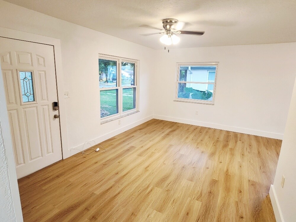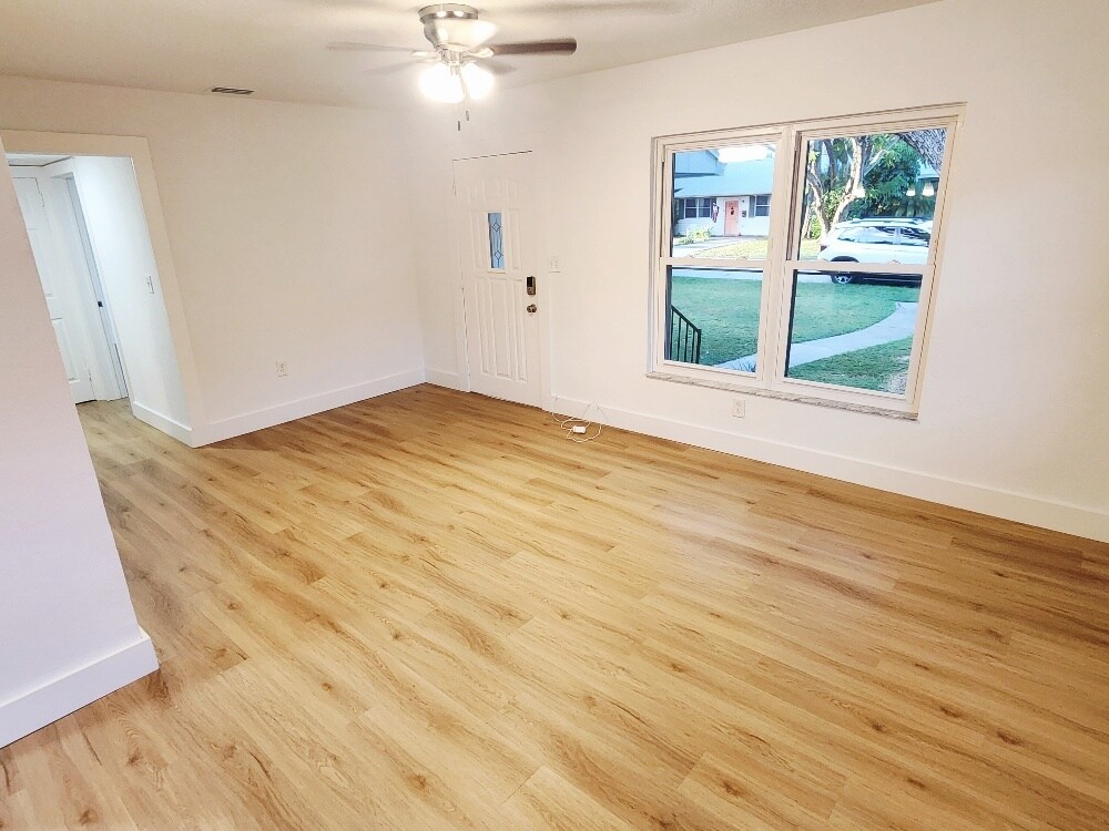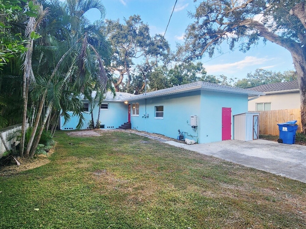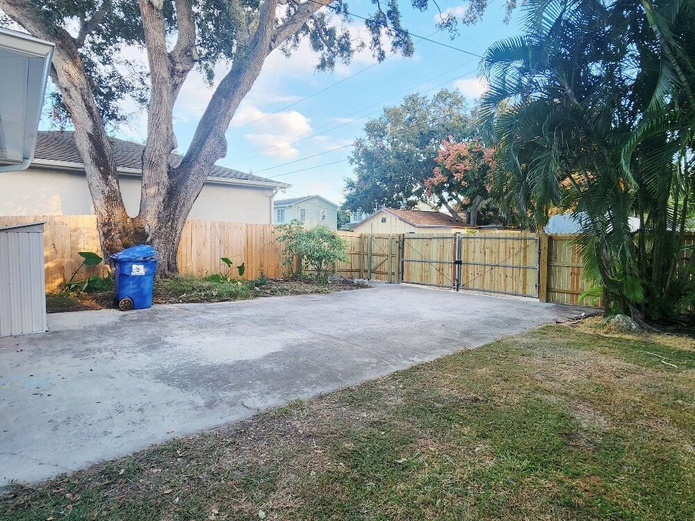 Beautifully Remodeled 3 Bed / 2 Bath Home in Desirable Woodlawn - St. Pete This newly remodeled block home offers 3 spacious bedrooms, 2 bathrooms, and 1,400 sq ft of thoughtfully designed living space on a quiet, tree-lined street in the heart of Woodlawn, one of St. Petersburg's most sought-after neighborhoods. Enjoy the best of both worlds with peaceful residential surroundings just minutes from vibrant Downtown St. Pete and with easy access to I-275. Located outside the flood zone for added peace of mind. Inside, you'll find modern upgrades throughout, including beautiful new flooring and a new A/C system. The open layout is ideal for comfortable living and entertaining. Step outside to a spacious, fully fenced backyard featuring lush tropical landscaping and mature oak trees - a private oasis to relax or gather with friends. Additional highlights: Ample street and private gated driveway provide plenty of room for cars, an RV, or even a Boat. Large laundry room with high-efficiency front-loading washer & dryer Move-in ready and waiting to welcome you home for the holidays! Don't miss this rare rental opportunity in one of St. Pete's premier neighborhoods! Rented unfurnished. 12-month lease desired. A shorter lease is possible at a different cost. First month + one month deposit due at signing. NO SMOKING. One dog OK. Please submit all inquiries by email and with a credit-checked application. Proof of income required. Tenant is responsible for all utilities. Yard maintenance is provided by the landlord
