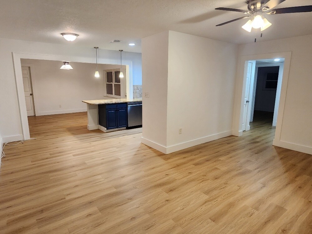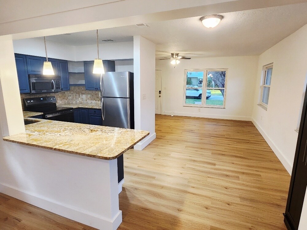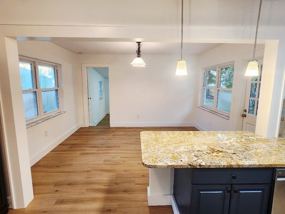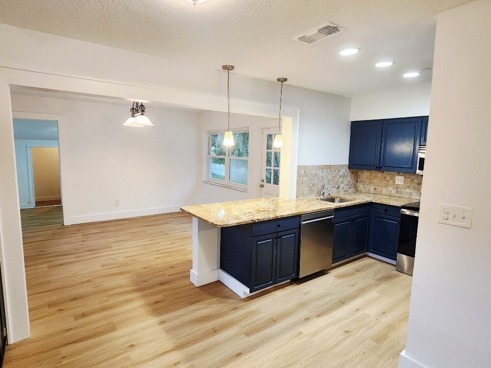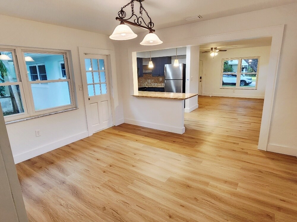 Beautifully Remodeled 3 Bed / 2 Bath Home in Desirable Woodlawn - St. Pete This newly remodeled block home offers 3 spacious bedrooms, 2 bathrooms, and 1,400 sq ft of thoughtfully designed living space on a quiet, tree-lined street in the heart of Woodlawn, one of St. Petersburg's most sought-after neighborhoods. Enjoy the best of both worlds with peaceful residential surroundings just minutes from vibrant Downtown St. Pete and with easy access to I-275. Located outside the flood zone for added peace of mind. Inside, you'll find modern upgrades throughout, including beautiful new flooring and a new A/C system. The open layout is ideal for comfortable living and entertaining. Step outside to a spacious, fully fenced backyard featuring lush tropical landscaping and mature oak trees - a private oasis to relax or gather with friends. Additional highlights: Ample street and private gated driveway provide plenty of room for cars, an RV, or even a Boat. Large laundry room with high-efficiency front-loading washer & dryer Move-in ready and waiting to welcome you home for the holidays! Don't miss this rare rental opportunity in one of St. Pete's premier neighborhoods! Rented unfurnished. 12-month lease desired. A shorter lease is possible at a different cost. First month + one month deposit due at signing. NO SMOKING. One dog OK. Please submit all inquiries by email and with a credit-checked application. Proof of income required. Tenant is responsible for all utilities. Yard maintenance is provided by the landlord