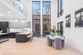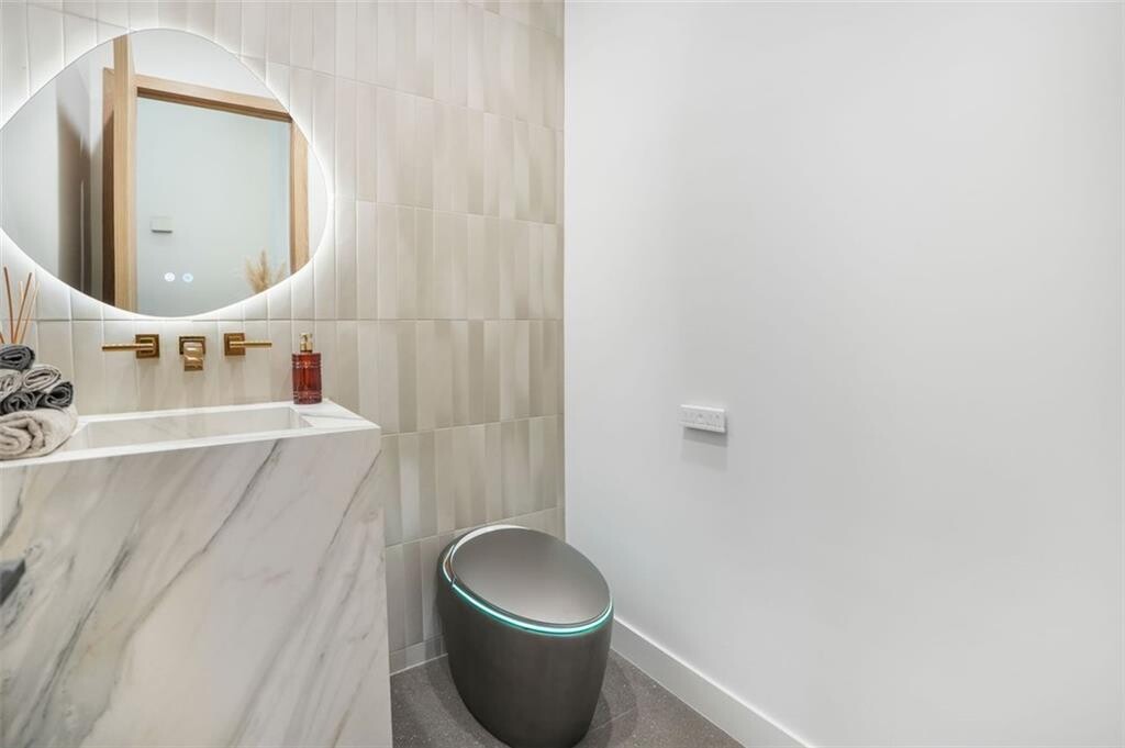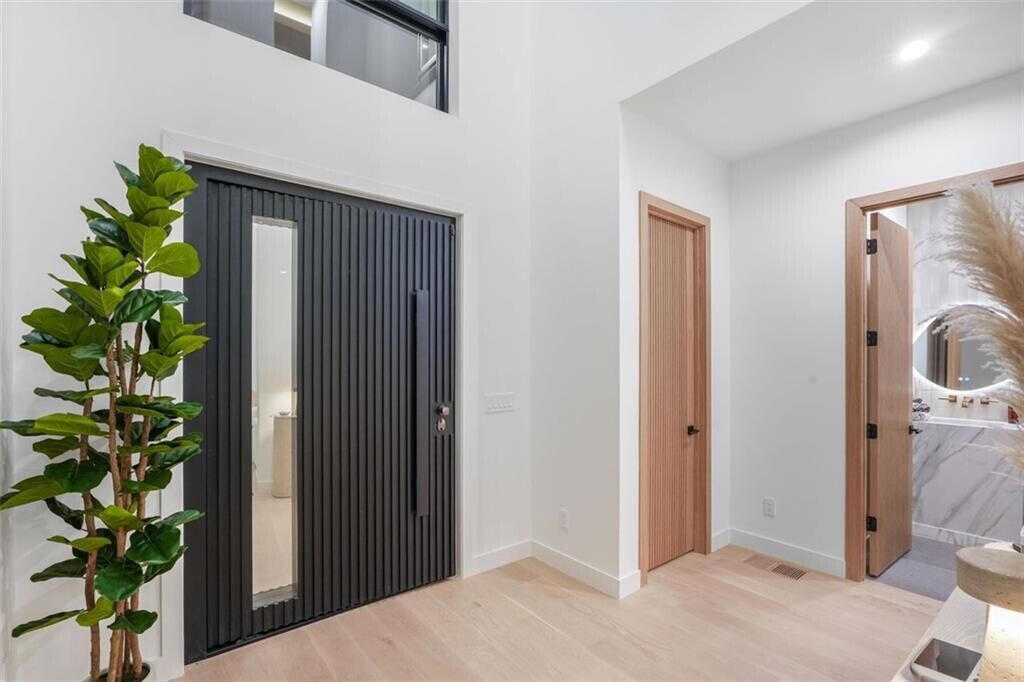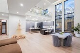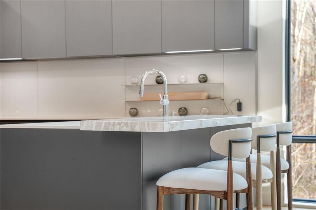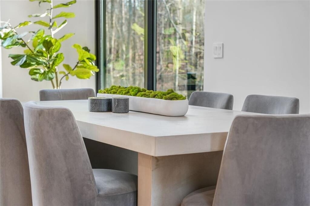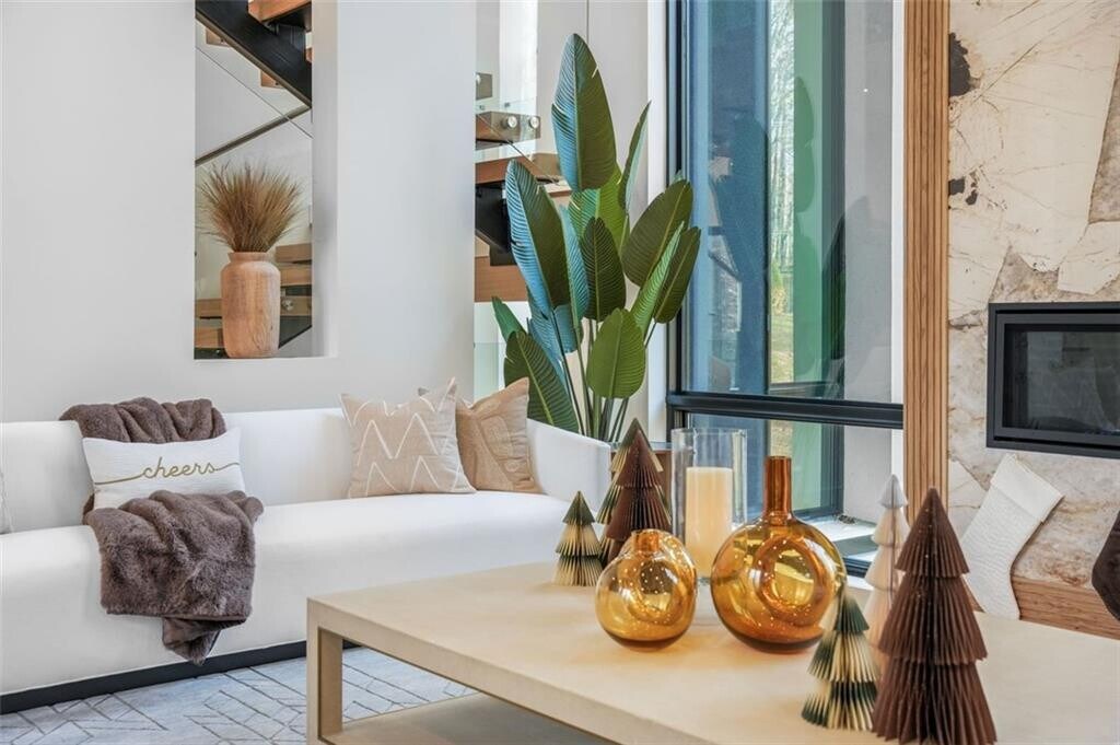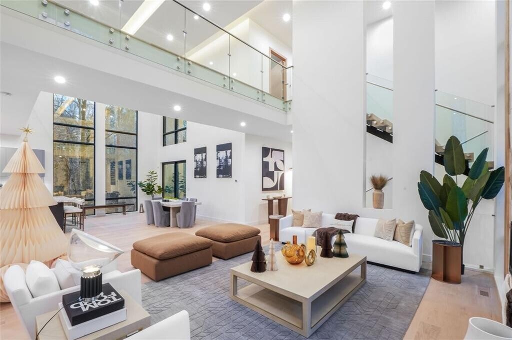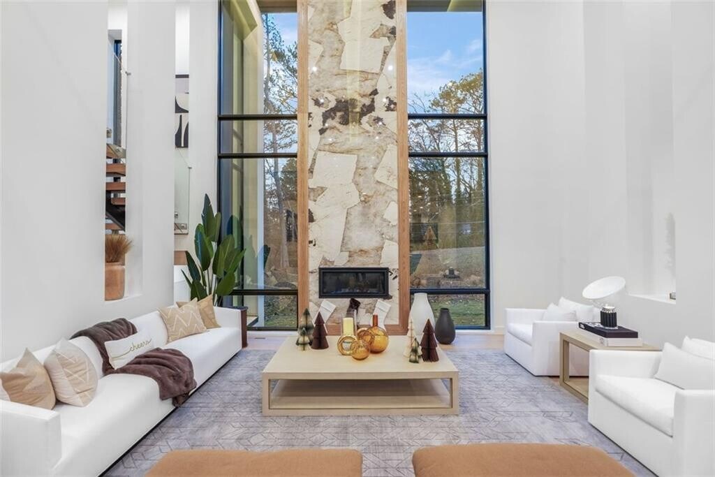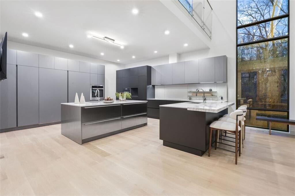 New modern-contemporary custom home on 1.47 acres featuring 5BR/5.5BA and a 3-car garage. The living room showcases 22 ft floor-to-ceiling windows with wooded views. Primary Suite on the main includes heated bathroom floors,his and hers custom closets,and a private terrace with fireplace. Poliform Italian kitchen with massive island and premium Miele appliances. Open glass-rail staircase connects all levels. Hardwood floors and 10 ft ceilings throughout. Large covered lower patio. Unfinished basement. MLS ID 7754525