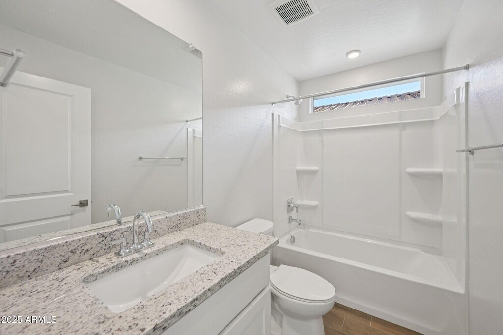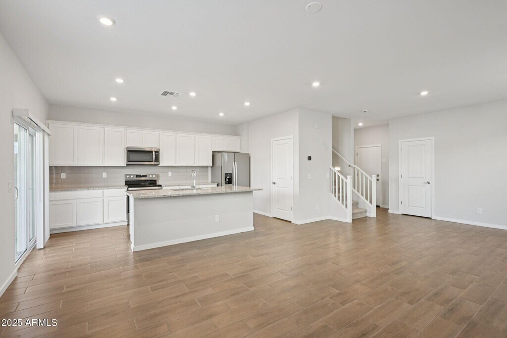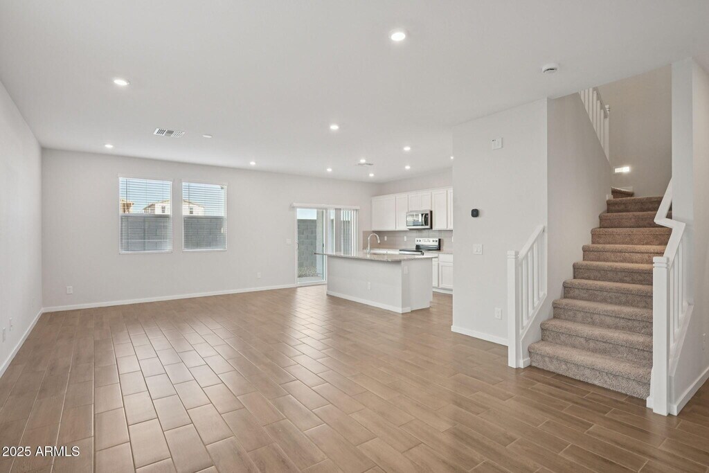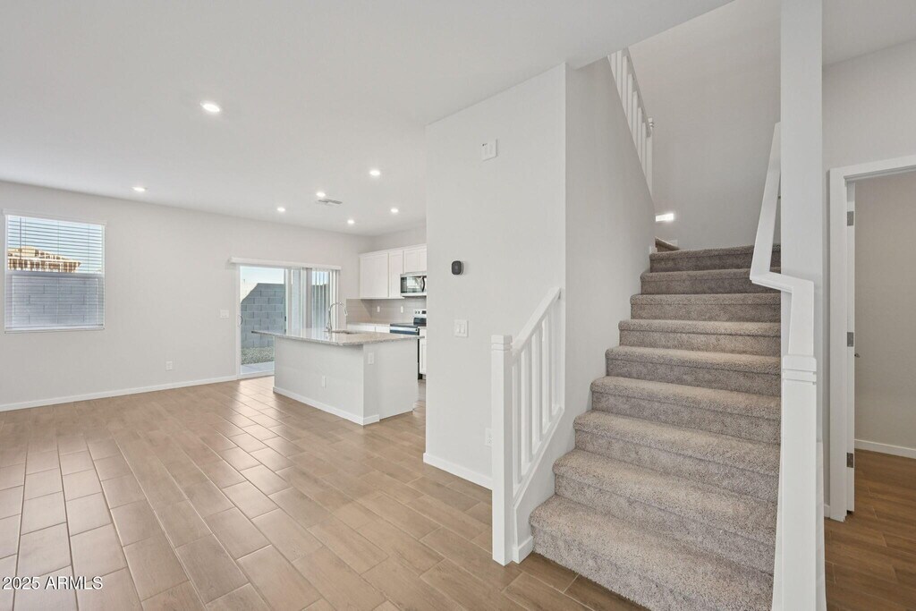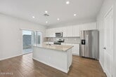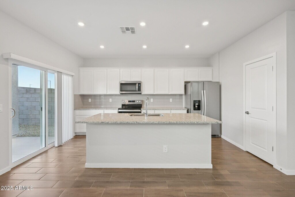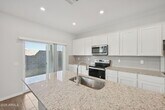 Step into this brand-new Iris plan in the master-planned North Copper Canyon community in Surprise. With 3 bedrooms and 2.5 baths,this home features 9-ft ceilings on the main level,open living flowing from the kitchen into the great room and dining area. The kitchen offers a generous island and walk-in pantry. Graceful finishes include granite slab countertops in kitchen and baths,and ceramic tile flooring in key living areas. Upstairs the primary suite includes a walk-in closet and spa-style bath with dual vanities and a walk-in shower. The exterior is desert-landscaped front and back and includes a two-car garage. Residents enjoy community parks,walking trails,dog park,splash pad and sports fields within North Copper Canyon. Ideal option near retail,recreation,and freeways.