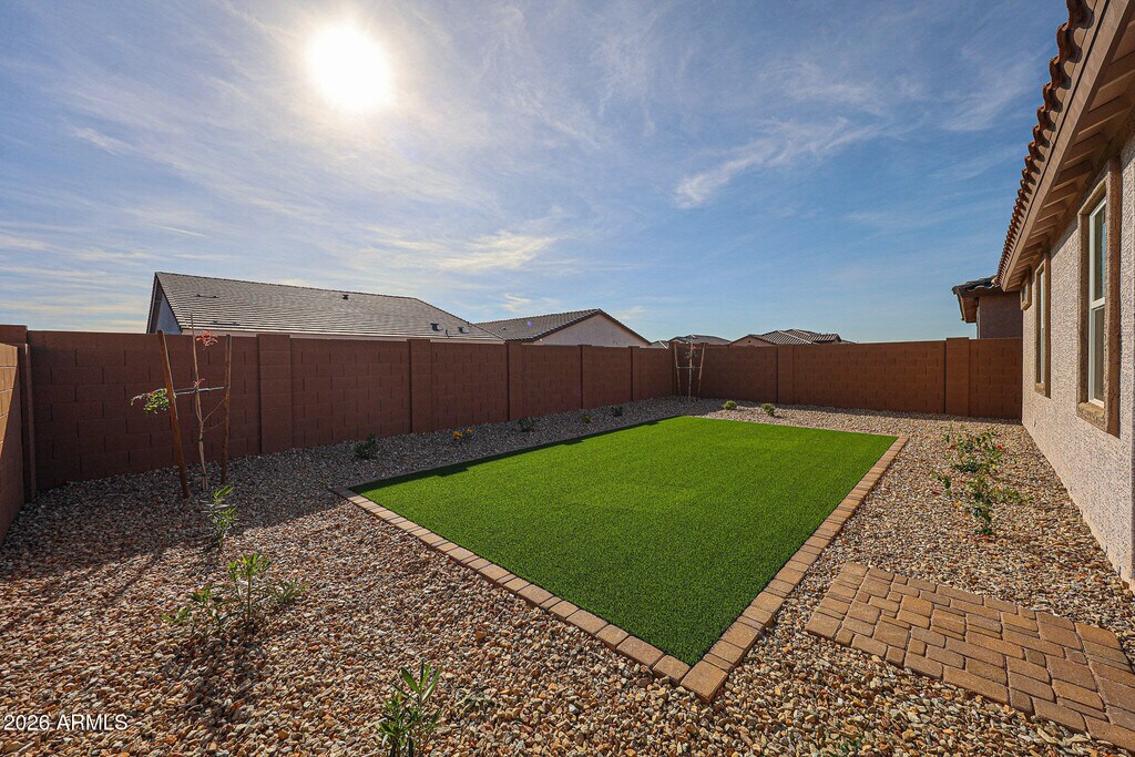 Beautiful single level 5-bedroom,3 bathroom home in master - planned community! Never lived in! This Lewis home offers a great room floor plan,upgraded kitchen with Quartz countertops and stainless steel appliances. Tile flooring with carpet in bedrooms,covered patio and artificial grass backyard with pavers. Home is conveniently located in desirable Surprise.