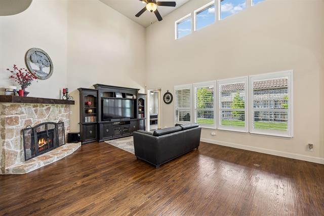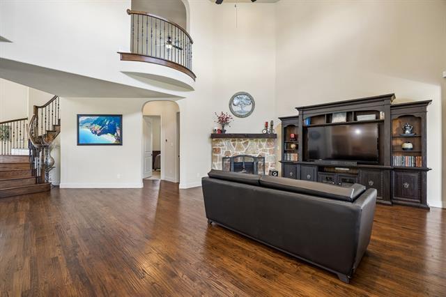 Beautifully appointed home in the highly sought-after Hidden Lakes community, perfectly designed for both everyday living and elevated entertaining. From the moment you enter, you’re welcomed by rich wood floors, soaring ceilings, and an impressive winding wrought iron staircase. A private office sits just off the entry, while the thoughtfully designed floorplan offers a guest bedroom with full bath downstairs along with a spacious primary suite with abundant closet space. The heart of the home is the open kitchen with a beautiful oversized granite island, and chef inspired professional grade stainless steel appliances, including new double stainless steel ovens, all opening seamlessly to the main living room complete with stone fireplace and custom plantation shutters. Upstairs, you're greeted with new wood floors, two secondary bedrooms connected by a Jack and Jill bath and an additional half bath. Enjoy the expansive game room with wet bar and media room featuring over $12,000 in equipment that includes a 100 inch smart TV for exceptional movies and sports, creating a full entertainment experience. Step outside to a covered patio overlooking a spacious, private backyard ideal for gatherings, grilling, or relaxing evenings at home. Convenient access to the community pool, clubhouse, parks, and scenic trails. Zoned to highly acclaimed Keller ISD and offering easy access to shopping, dining, and major highways, and DFW Airport. This home delivers the perfect blend of luxury, comfort, and convenience. (Water and city services included in the monthly rent amount).