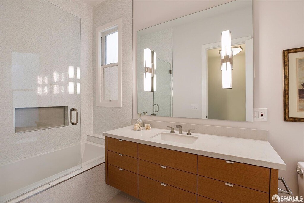 This stunning Victorian duplex underwent a meticulous, down-to-the-studs renovation, blending timeless charm with modern luxury. Residence 1738 Bryant, the lower flat of this two-unit building, offers an expansive 1,700 sq. ft. open floor plan with 2 bedrooms and 2 bathrooms. Bright and inviting, the home showcases a fabulous chef's kitchen, spa-inspired baths, and serene views of the neighboring park. Every detail was crafted to the highest standard during the year-long remodel. Upgrades include all-new HVAC, Cat5 wiring, plumbing, structural steel supports, gas lines, soundproofing, and a reinforced concrete foundation. Interior highlights feature wide-plank flooring, a new gas fireplace, custom lighting, and Caesarstone countertops throughout. The gourmet kitchen is appointed with Thermador appliances, premium finishes, and abundant storage. Additional amenities include in-unit laundry, one-car garage parking, and shared backyard. This residence delivers the perfect balance of historic character and contemporary design in a coveted location.