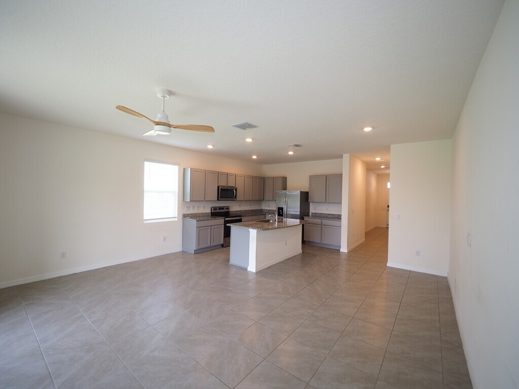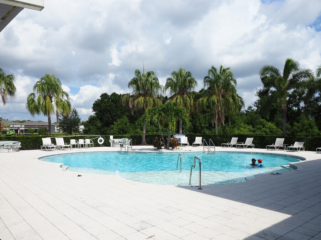 This two-story, all concrete block end-unit townhome has an open concept downstairs that includes a large open kitchen, a powder room, and a large family room that overlooks a covered lanai and is situated on a lake. The second floor includes a spacious Main Bedroom with ensuite bath, two additional bedrooms, a second full bathroom, and a laundry area. This home comes with all appliances, including a stainless-steel refrigerator, built-in dishwasher, electric range, microwave, washer, and dryer. The community features a swimming pool, pickleball courts, dog park and a tot lot.