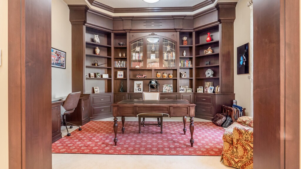 Experience refined luxury living in the heart of Boca Raton's coveted Millionaire's Mile at Azura on the Jog Road corridor. Ideally located near Boca's top-rated private and public schools,this exceptional residence is tucked away on a quiet cul-de-sac with no rear neighbors,offering a rare sense of privacy in a highly sought-after setting. An extended driveway leads to a three-car garage and welcomes you into an impressive interior. The thoughtfully designed floor plan features five bedrooms,four and one-half baths,a private office,and a spacious loft. Soaring 23-foot ceilings enhance the home's grand,open feel. The primary suite is conveniently located on the main level and includes an additional sitting area,perfect for a home office or workout space. The primary bath offers MLS ID B26001362